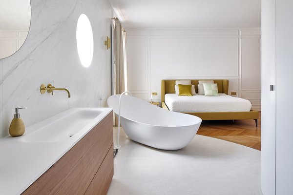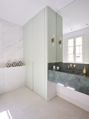 Jedes Detail wurde so gestaltet, dass Komfort und Ästhetik maximiert werden: Fischgrätholzboden mit Keramikrahmen, individuelle Vertäfelungen, diskrete integrierte klimatisierte Klimaanlage und stilisierte Heizkörper, die dem modernistischen Charakter des Gebäudes Tribut zollen. Dank der kürzlichen umfassenden Renovierung bietet die Immobilie geringe Wartung und eine ausgezeichnete langfristige Investition.