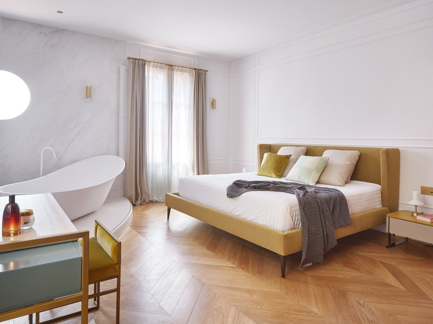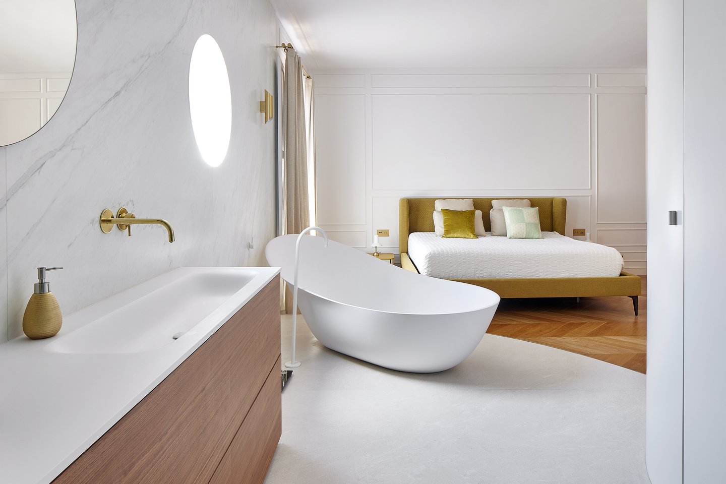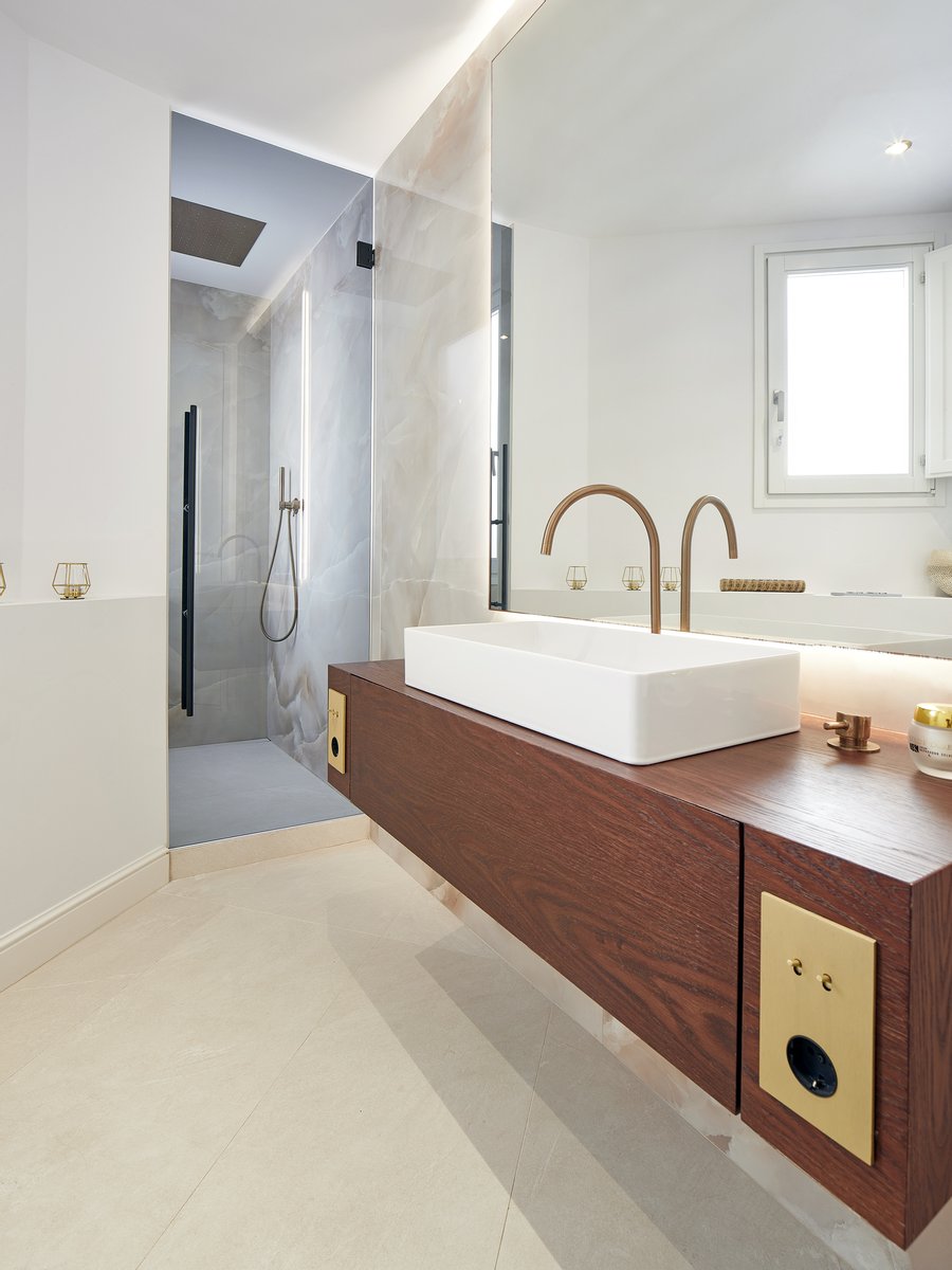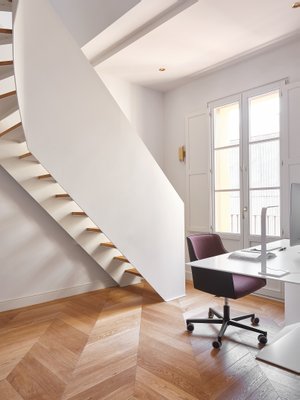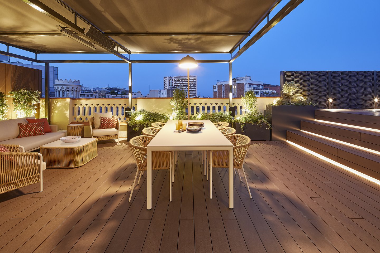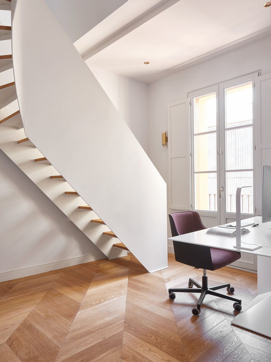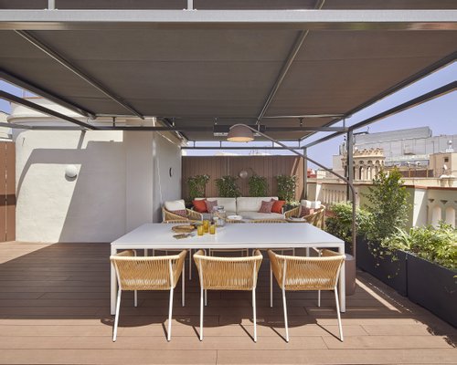 Die Ecklage des Gebäudes bietet privilegierte Ausblicke auf die historische Architektur des Eixample und zum Meer, während neun Balkone für ständiges Licht sorgen. Nachts verwandelt sorgfältig gestaltete Innenbeleuchtung das Haus in einen eleganten und ruhigen Raum.