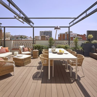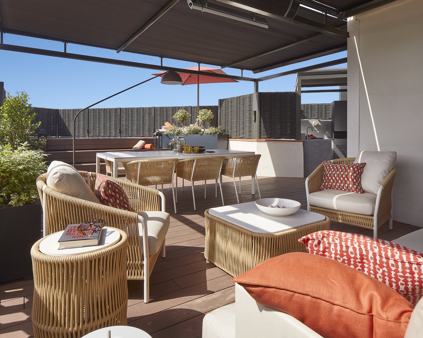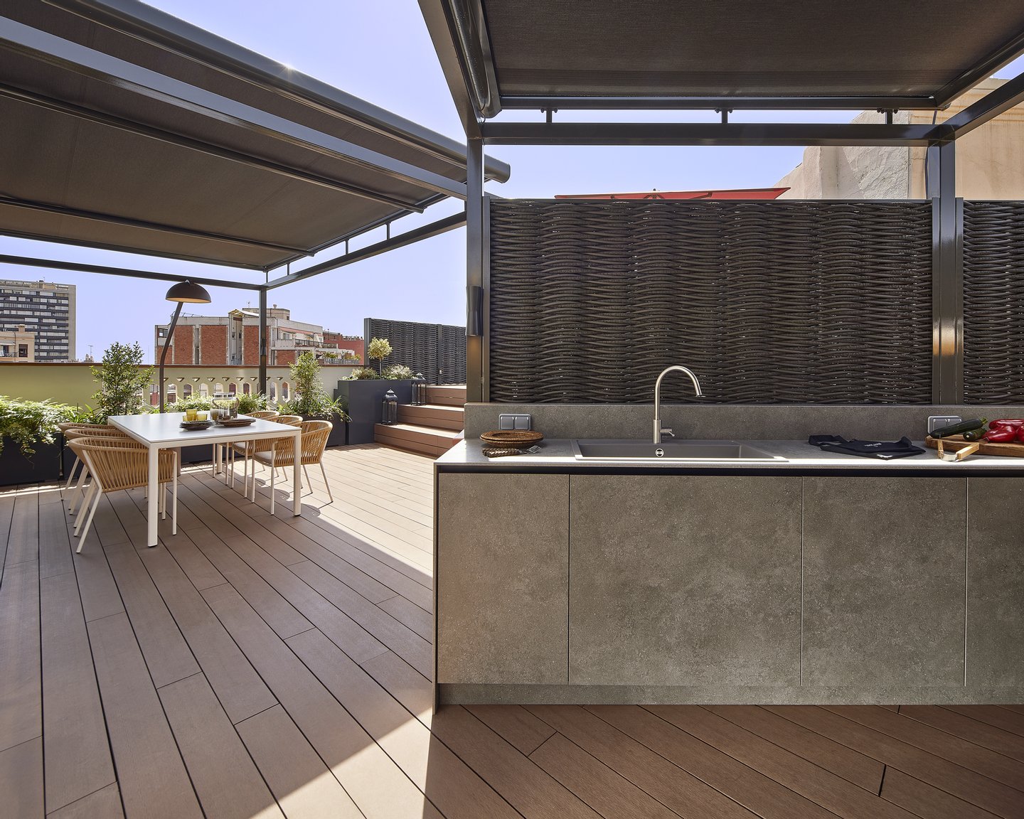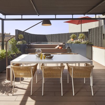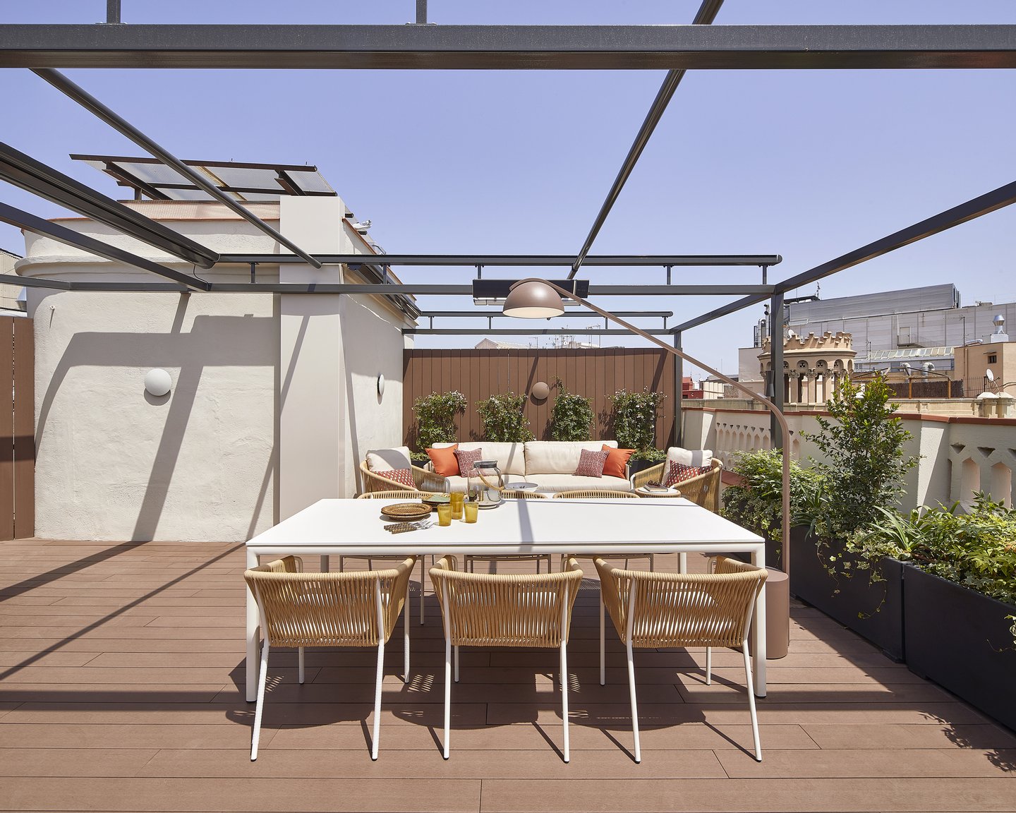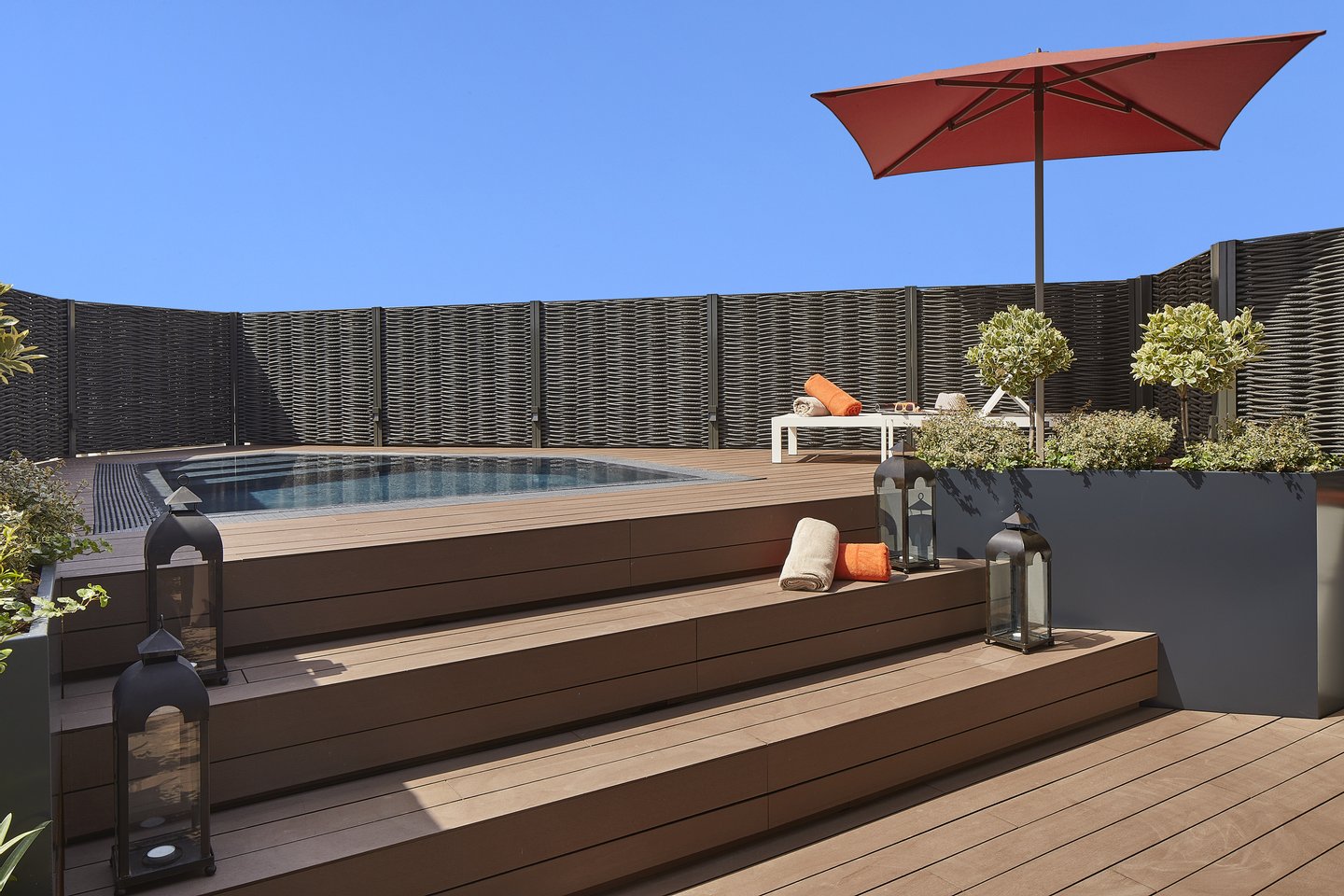 Die Terrasse, die eine außergewöhnliche Ausrichtung bietet, bietet einen echten urbanen Wellness-Retreat: eine Sommerküche, einen Außen-Essbereich, eine Chill-out-Zone und einen privaten Pool – perfekt, um das mediterrane Klima das ganze Jahr über zu genießen.