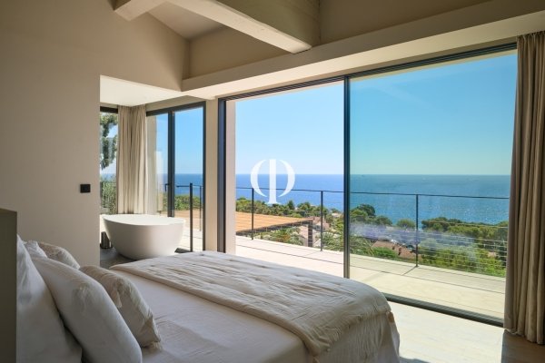 In Les Issambres, this contemporary 365 m² villa stands out as an exceptional living space overlooking the Mediterranean. Its elegant architecture, with clean lines and generous proportions, was designed to capture the light and offer a constant