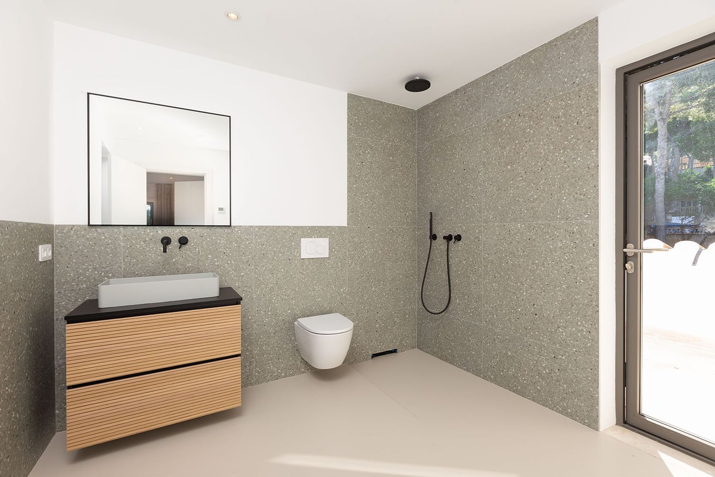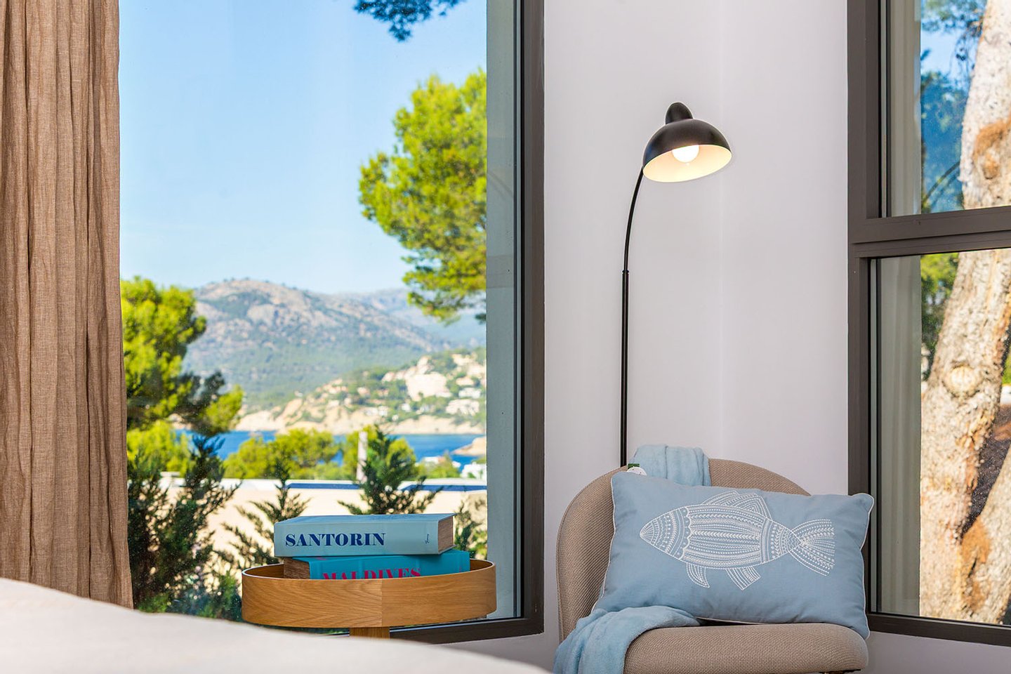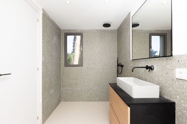 Das architektonische Konzept der Villa überzeugt durch helle, lichtdurchflutete Räume mit raumhohen Fensterfronten, die nicht nur eine moderne Ästhetik schaffen, sondern auch einen harmonischen Bezug zur mediterranen Umgebung herstellen.
