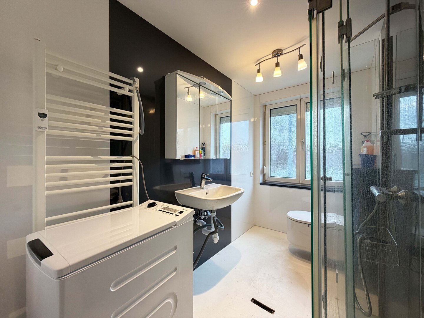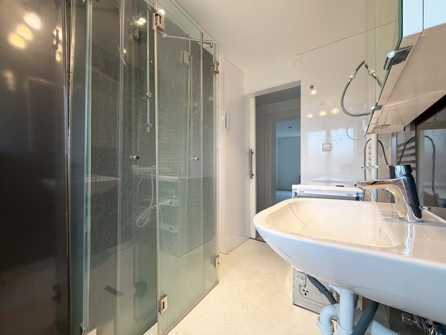 + Bad: Ein kleines Raumwunder mit fugenloser Dusche, klappbarer Glaswand und hochwertigem Dusch-WC – modern, pflegeleicht und überraschend großzügig nutzbar