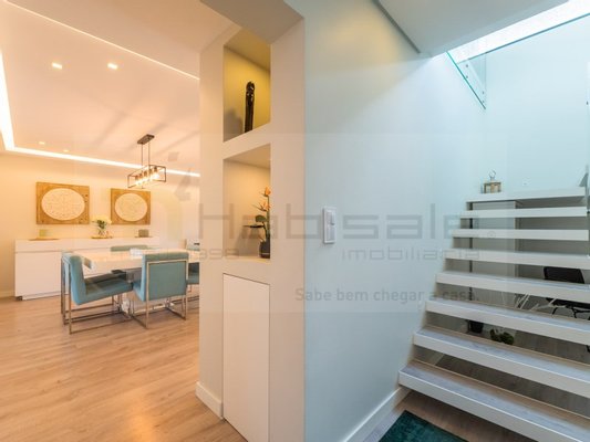 Wir präsentieren dieses exklusive Duplex-Penthouse mit 4 Schlafzimmern, das in einer privaten Referenzwohnung in Famões eingefügt wurde, wo familiärer Komfort mit dem Luxus der Oberflächen und der Ruhe einer gemütlichen Wohnumgebung kombiniert wird.
