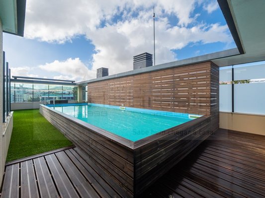 - Die Terrasse ist mit 140,90 m2 das eigentliche Highlight dieses Penthouses - mit privatem Pool, Grillplatz, Loungebereich und Panoramablick über Odivelas.