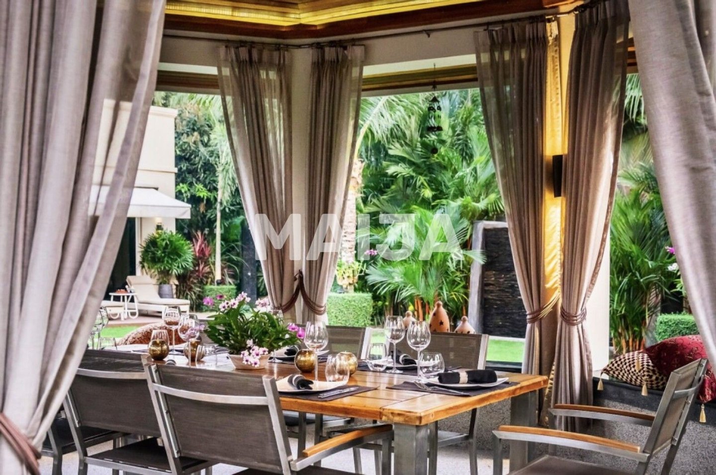 Genießen Sie die Bequemlichkeit, in der Nähe erstklassiger Annehmlichkeiten zu sein, darunter die International School, nur 5 km entfernt, und das belebte Einkaufszentrum Terminal 21, 20 km entfernt. Für Pferdeliebhaber bieten die nahegelegenen Reitställe ein einzigartiges Erlebnis. Mit dem Bangkok International Airport nur 110 km entfernt ist diese Villa die perfekte Ausgangsbasis für die Erkundung der Region.