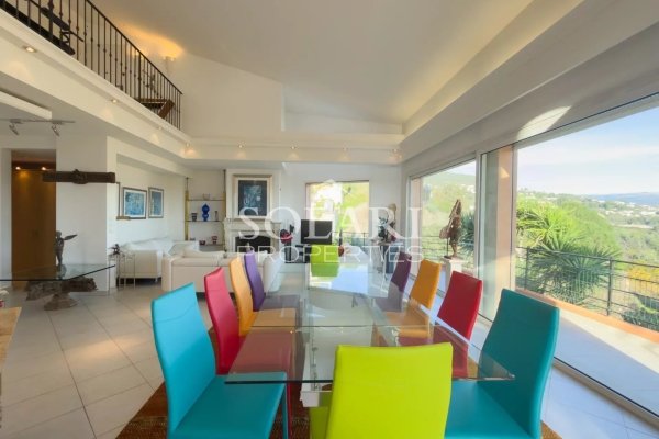 Diese 289 m² große, vom Architekt entworfene Villa mit Schwimmbad bietet einen panoramischen Blick auf das Meer und die Berge.