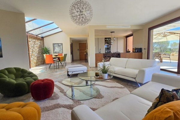 Saint-Raphaël – SOLE AGENT Nestled in one of the most exclusive residential areas of the French Riviera, this 145 sqm contemporary Roof top apartment, embodies Mediterranean elegance. Bathed in natural light, it opens onto spacious south-facing
