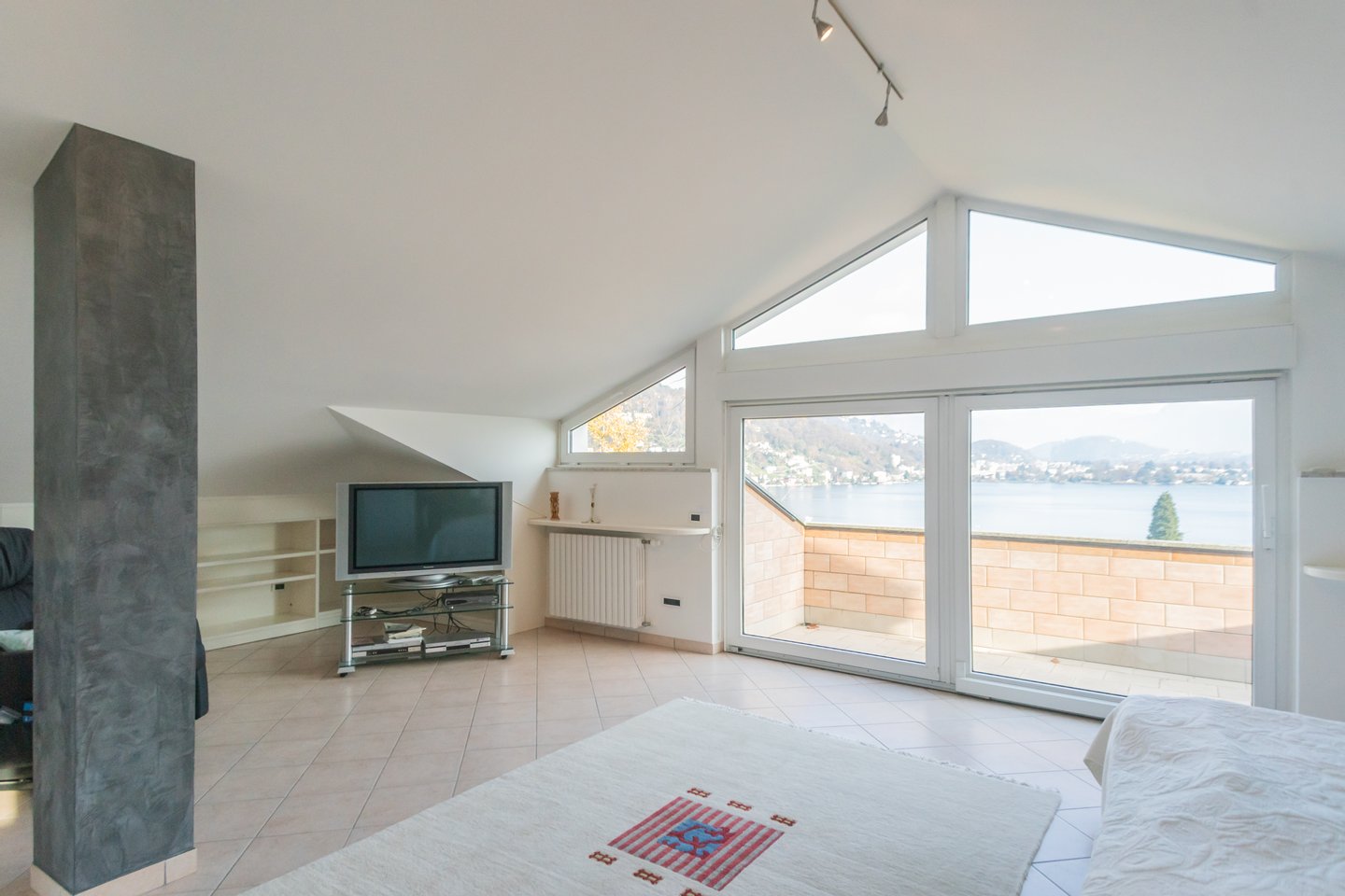 Diese traumhafte Luxus-Villa befindet sich in einer ruhigen und sonnigen Lage, auf der italienischen Seite des beliebten Ortes Ponte Tresa, mit traumhaften Blick auf den Luganer See. Alle Dienstleistungen, der See sowie die schöne Uferpromenade sind