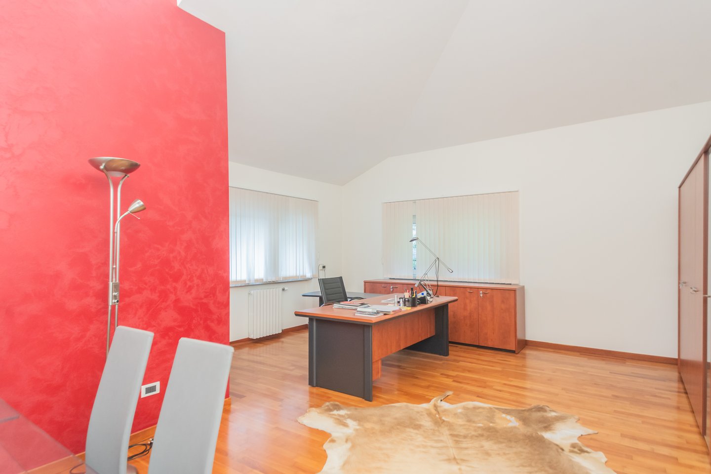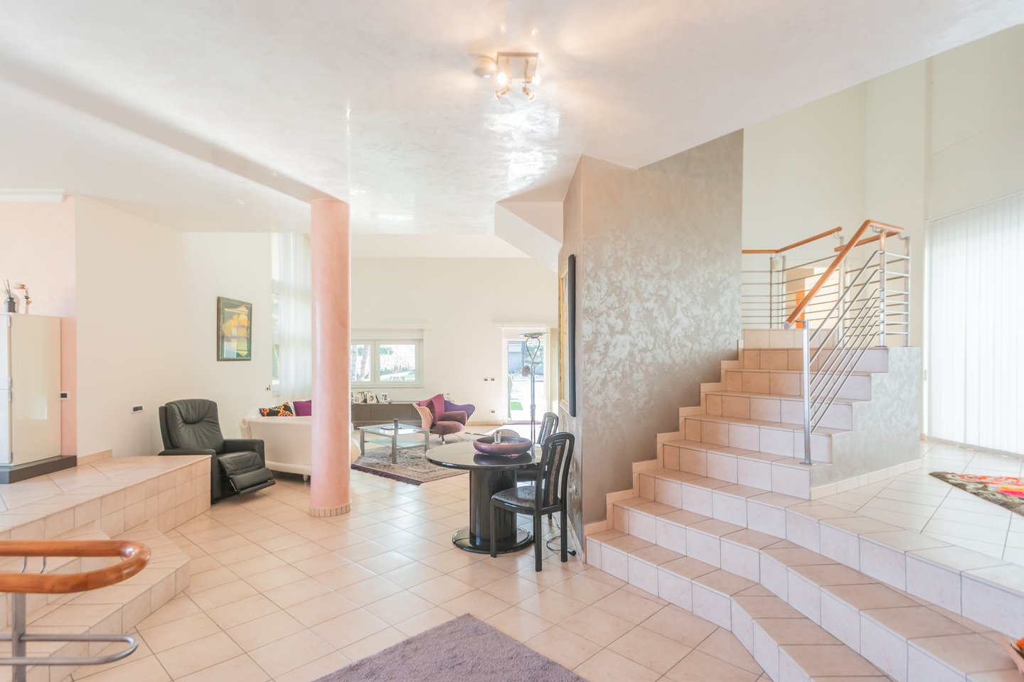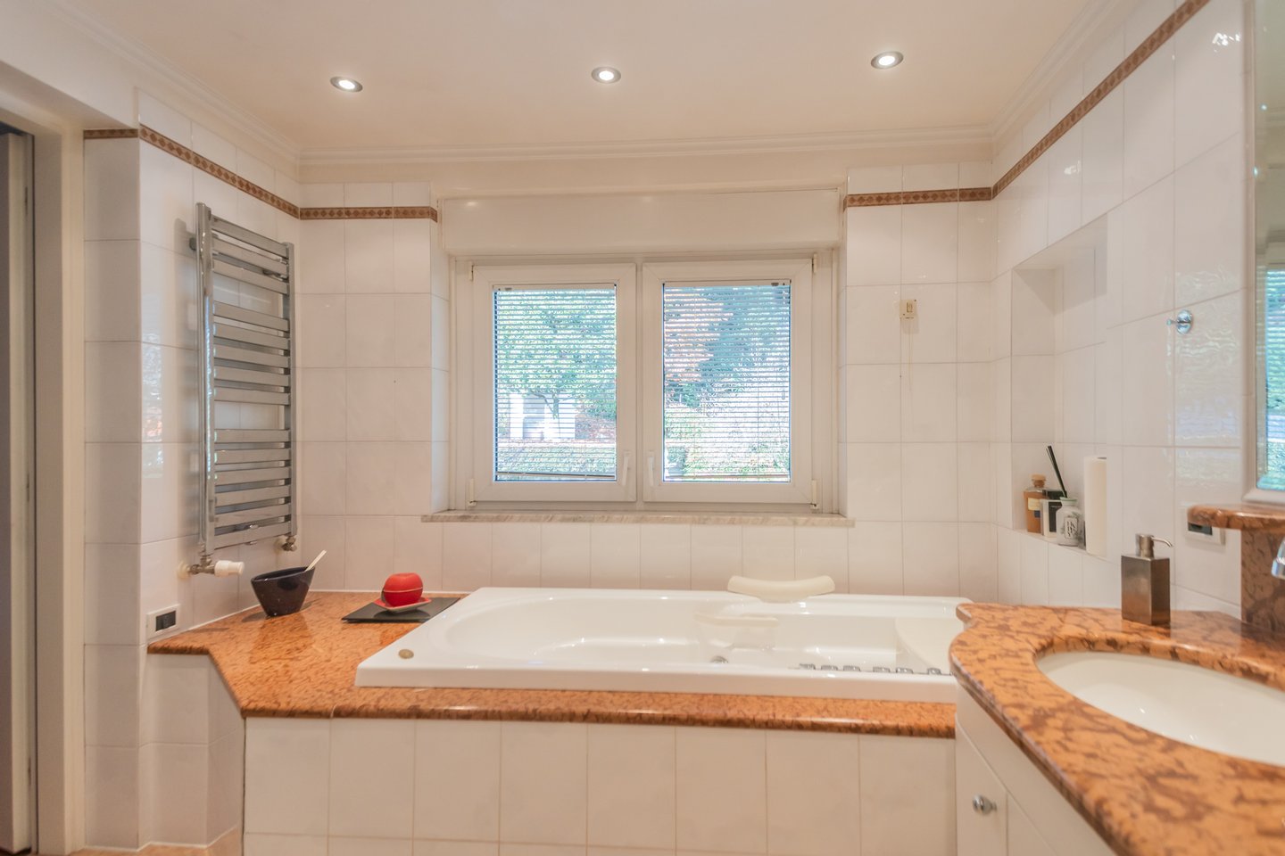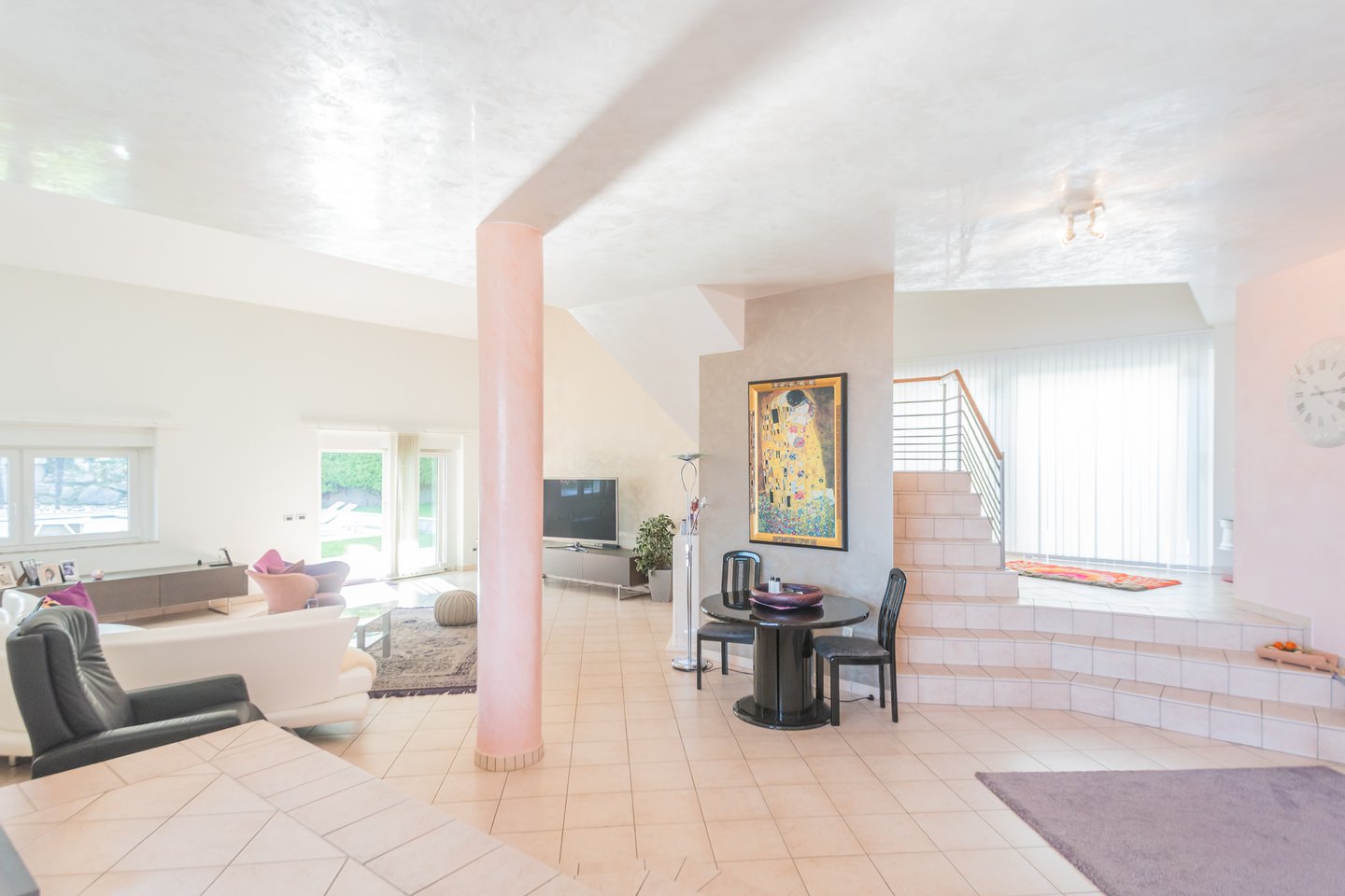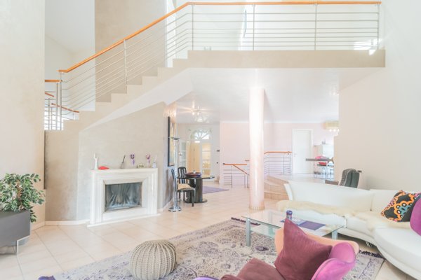 Die Villa bietet eine Wohnnutzfläche von ca. 525 qm und teilt sich wie folgt auf: Souterrain: Eingangsbereich, 4 Hobbyräume, 2 Bäder, Sauna-Raum, Waschküche, Keller, Heizraum und eine große Garage (82 qm) EG: Eingangsbereich, großer und heller Wohnbereich mit Kamin und Ausgang auf die Terrasse und in den Garten, offener Essbereich, Wohnküche, Schlafzimmer mit Bad en-suite, Ankleide, Arbeitszimmer, vier große Terrassen. Obergeschoss: Flur, zwei große Schlafzimmer – eines davon mit Balkon und ein Badezimmer. Der wunderschöne Garten von ca. 3.965 qm, gepflegt wie ein Park und ausgestattet mit einem traumhaften Pool, bietet ein exklusives Ambiente und absolute Entspannung.
