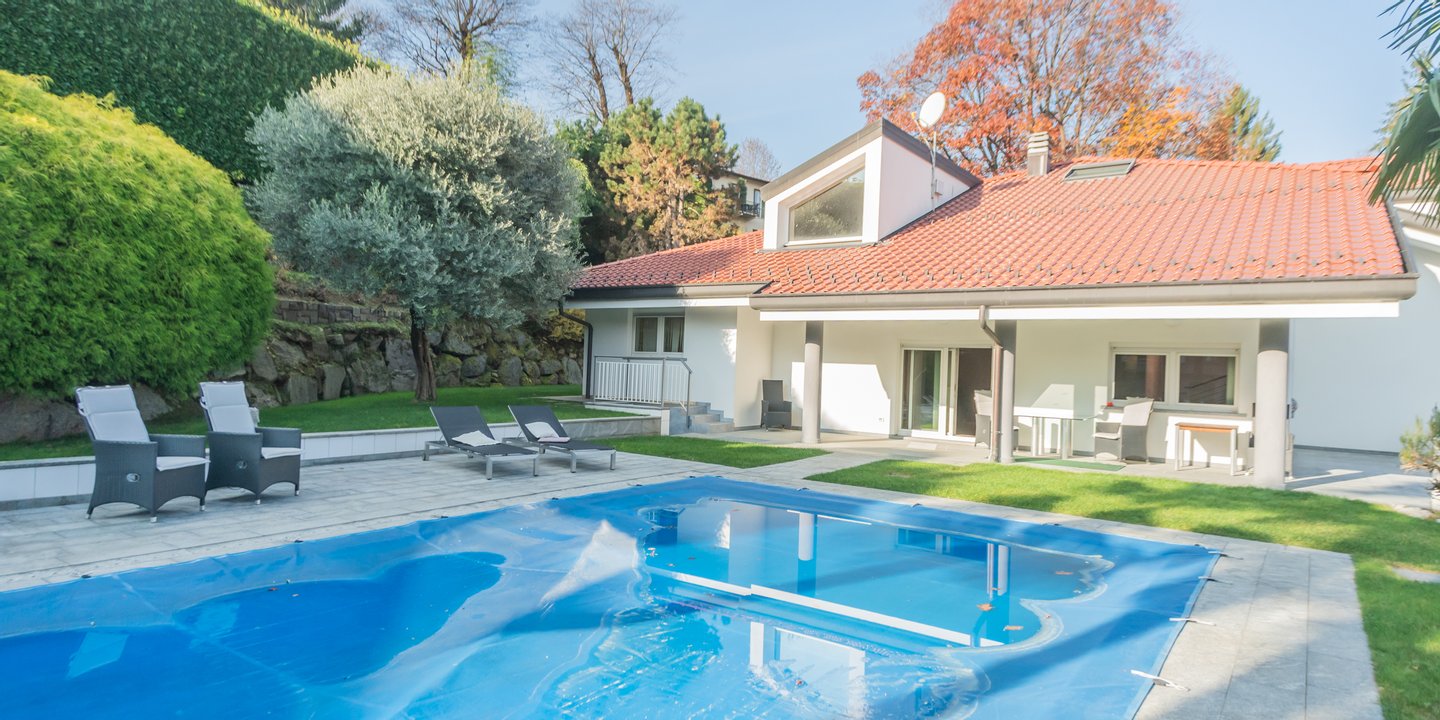 Große Luxus-Villa in ruhiger und sonniger Lage mit schönem Grundstück, privatem Pool und Traumblick auf den Luganer See