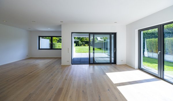 - Hochwertige Fenster- und Türanlagen aus pulverbeschichtetem Metall, 3-fach isolierverglast