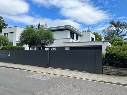 Eine echte Rarität: Diese neuwertige Bauhausvilla in absoluter Bestlage verbindet zeitlose Architektur mit exklusiver Ausstattung und modernster Haustechnik – ein bezugsfertiges Unikat mit außergewöhnlichem Wohnkomfort. Die einseitig angebaute Design-Villa wurde im April 2017 fertiggestellt und überzeugt durch klare Linienführung, lichtdurchflutete Räume sowie ein durchdachtes Raumkonzept. Das zurückversetzt gelegene Grundstück ist zur Straße hin eingefriedet und bietet ein Höchstmaß an Privatsphäre und Sicherheit – nicht ohne Grund war die Immobilie zuletzt Wohnsitz eines bekannten Fußballprofis.