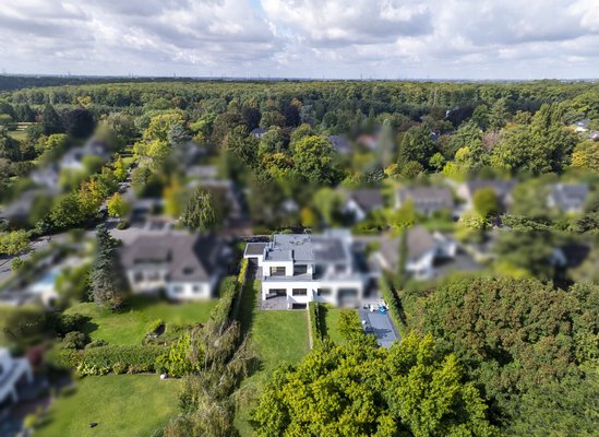Entlang malerischer Baumalleen reihen sich prachtvolle Gründerzeitvillen, stilvolle Villen aus dem letzten Jahrhundert sowie moderne Architektenhäuser, die in harmonischem Kontrast zur historischen Bausubstanz stehen. Die neu errichtete Villa liegt in der ruhigen Friedrich-von-der-Leyen-Straße – einem besonders charmanten Abschnitt des alten Alt-Meererbusch.