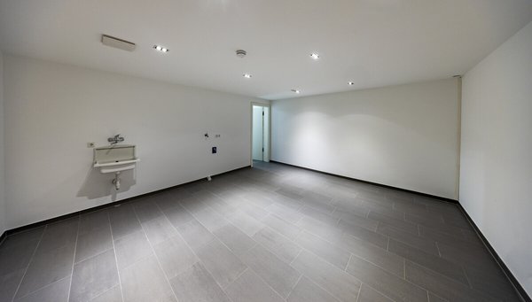 ca. 44 m² großer, vielseitig nutzbarer Raum mit Tageslicht, z. B. als Gäste- oder Wellnessbereich, Gästebad, Diele, zusätzlicher Abstellraum, zweiter Hauswirtschaftsraum und Hausanschlussraum