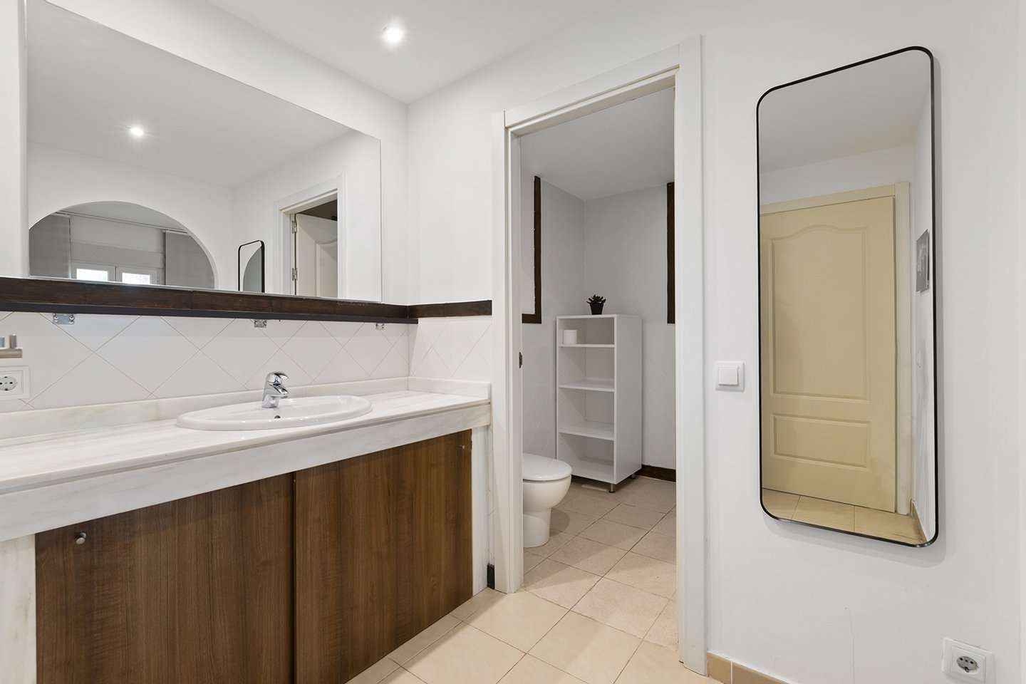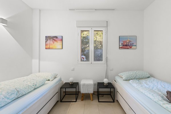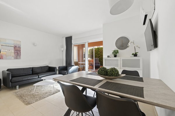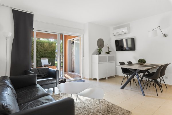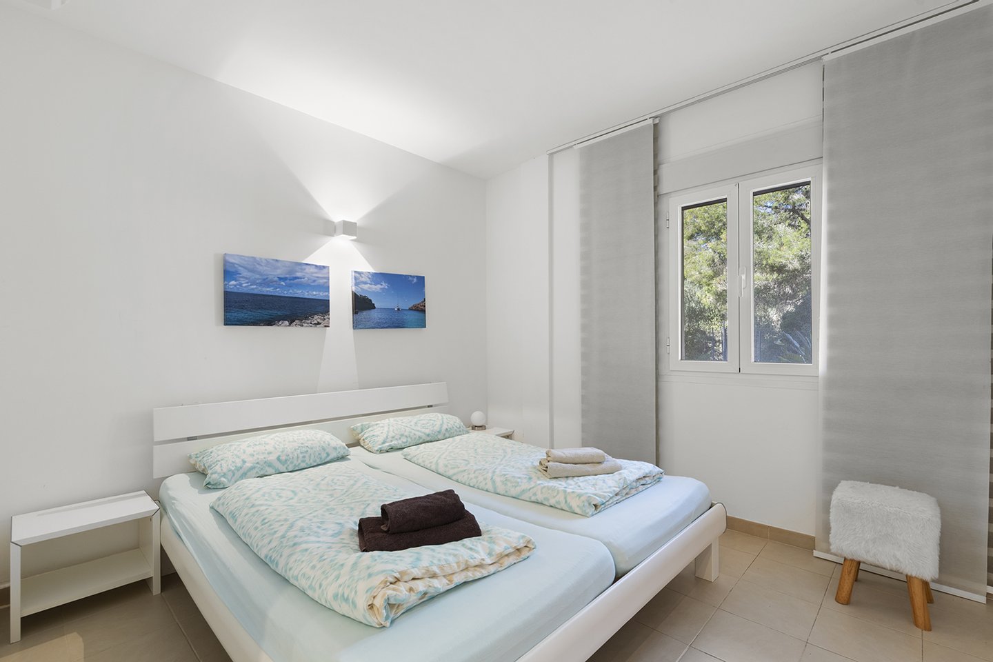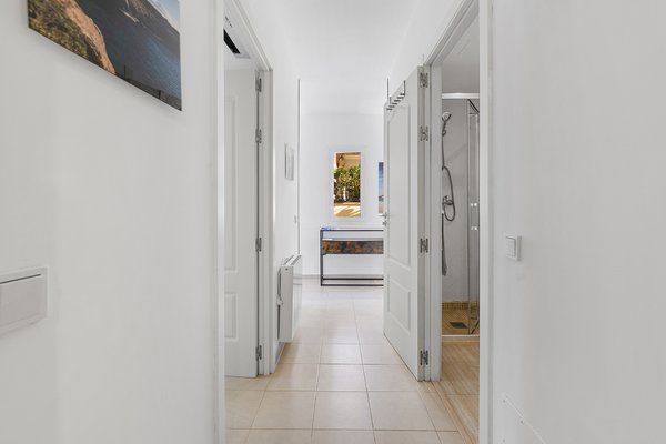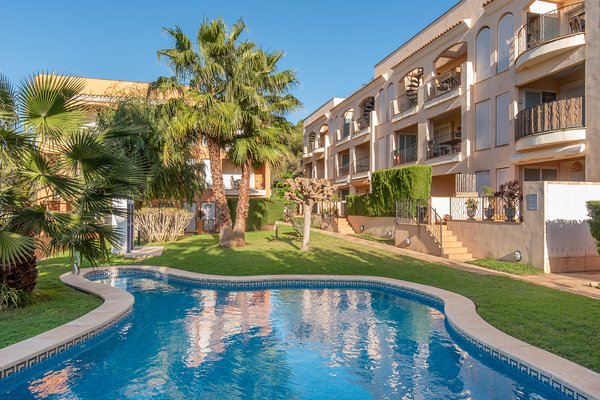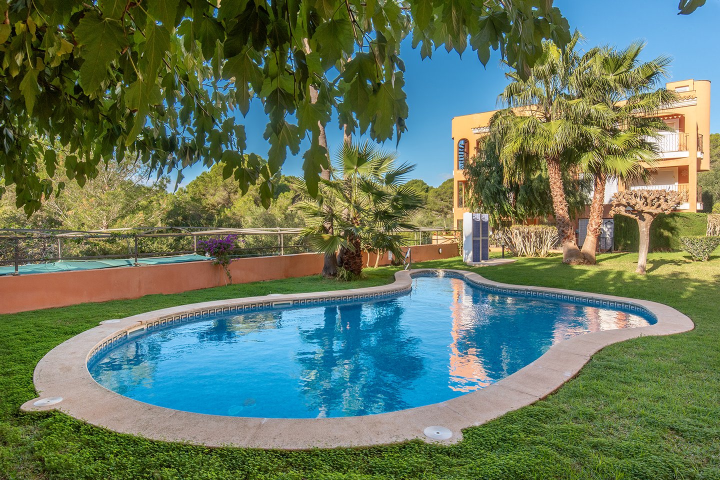 Die Gartenwohnung wurde vor 2 Jahren renoviert und neu ausgestattet. Sie verfügt über einen offenen Wohn-und Essbereich mit integrierter, moderner Küche, 2 Schlafzimmer und 2 Badezimmer, eines davon en Suite. Die Schlafzimmer sind mit Einbauschränken ausgestattet. Von den Fenstern aus fällt der Blick direkt ins Grüne, auf die unberührte Landschaft und die typisch mallorquinische Vegetation. Vom Wohn-und Essbereich aus hat man direkten Zugang auf die teilweise überdachte Terrasse. Eine Tür fuhrt Sie direkt zu dem Gemeinschaftspool und der Gartenanlage.