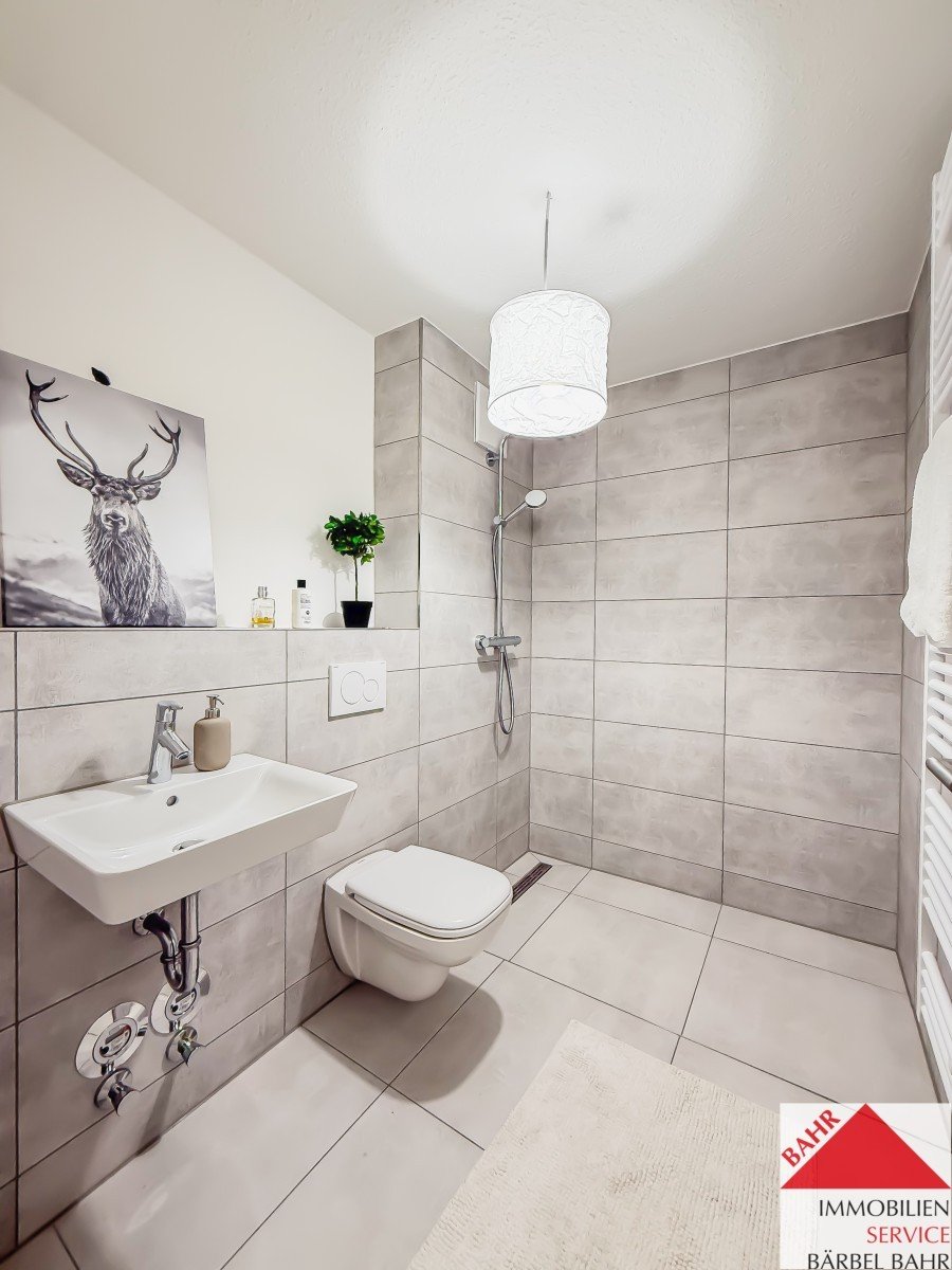 - Separates Gäste-Bad mit bodengleich gefliester Dusche