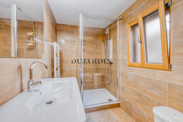 Im Inneren teilen sich die 245 m2 Wohnfläche in zwei Wohnungen auf. Das Erdgeschoss besteht aus einem Wohnzimmer, einem Esszimmer, einer separaten Küche, einer Speisekammer, einem Schlafzimmer mit eigenem Duschbad, einer separaten Toilette, einem zweiten Schlafzimmer, zwei weiteren Duschbädern und einem Studio. Die Unterkunft befindet sich im ersten Stock und verfügt über einen Eingang, eine Küche, ein Wohnzimmer, das durch eine überdachte Terrasse erweitert wurde, drei Schlafzimmer, eine Toilette und ein Duschbad.