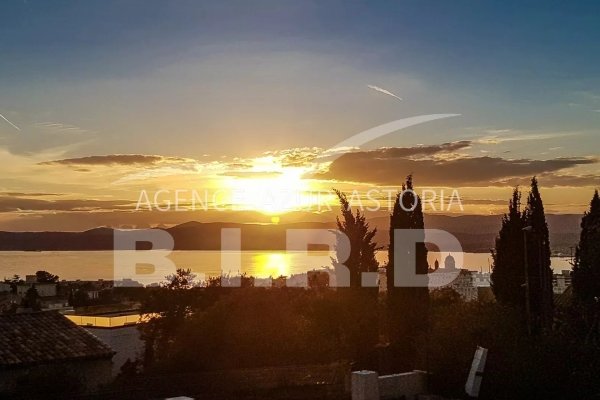 Mit Blick auf das Mittelmeer bietet diese außergewöhnliche zeitgenössische Villa einen 200° Panoramablick auf die Bucht von Saint-Raphaël, die sich bis zum legendären Golf von Saint-Tropez erstreckt.