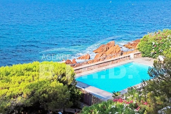 SAINT-RAPHAËL – Französische Riviera – Eine seltene Villa am Wasser in einer absolut ruhigen Umgebung, eingebettet in üppiges mediterranes Grün. Dieses Haus aus den 1950er Jahren fasziniert mit seiner zurückhaltenden Eleganz und zeitlosen Atmosphäre. Es ist auf zwei Ebenen erbaut und bietet sieben Haupträume, die von natürlichem Licht getaucht sind, darunter ein geräumiges, nach Süden ausgerichtetes Wohnzimmer mit Blick auf das Meer. Jedes Fenster rahmt eine atemberaubende Aussicht ein, wie auf dem Deck eines Schiffes. Fünf Schlafzimmer bieten bequem Platz für Familie und Freunde. Das Schwimmbad, seine Terrassen und der umzäunte Garten laden zur Entspannung ein, während eine Garage das Grundstück komplettiert. Nur wenige Gehminuten von den Geschäften entfernt und in der Nähe des Stadtzentrums gelegen, bietet diese Immobilie eine ideale Balance zwischen Privatsphäre, Lebensstil und Bequemlichkeit. Ein einzigartiges Anwesen für alle, die unberührte Orte und authentisches Leben am Meer schätzen.