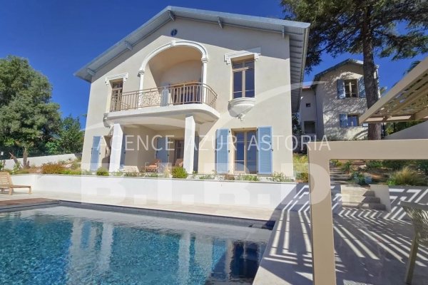 Ein angrenzendes Nebengebäude vervollständigt diese idyllische Umgebung mit einer Zweizimmerwohnung und einer separaten Suite, die sich perfekt für den Empfang von Familien oder Gästen in einer warmen und intimen Umgebung eignet. Sie werden besonders den Zugang über zwei Straßen, die Doppelgarage und den 1200 m² großen Garten im mediterranen Stil zu schätzen wissen, der das Haus mit einer üppigen grünen Umgebung umgibt, die zu jeder Jahreszeit blühen wird, und das alles in einer vollkommen ruhigen Umgebung. Das Schwimmbad mit seinem elegant eingerichteten Poolhaus und dem Abstell-/Sanitärbereich lädt Sie ein, sich unter dem azurblauen Himmel zu entspannen, als ob es zwischen Land und Meer schweben würde.