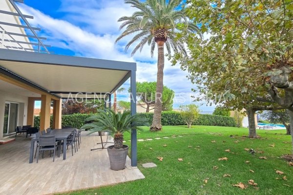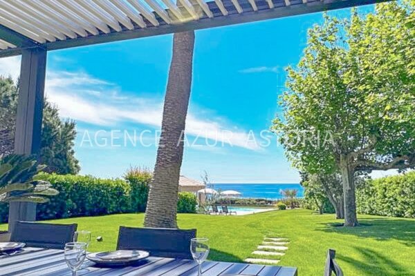 LES ISSAMBRES: Mit Blick auf die Bucht von Saint-Tropez funkelt das Meer und verschmilzt nahtlos mit dem Himmel. Hier lädt alles zur Ruhe ein. Diese Villa am Wasser, die direkt nach Süden ausgerichtet ist, bietet zu jeder Tageszeit ein fesselndes Schauspiel: das tiefe Morgenblau, die goldenen Spiegelungen des Abends und das sanfte Murmeln der Wellen als Soundtrack. Eingebettet auf einem flachen, fein gestalteten Grundstück von 1.600 m² öffnet sich das Grundstück zu einem beheizten Infinity-Pool, der scheinbar ins Mittelmeer hineintaucht und von einem Poolhaus erweitert wird, das perfekt zum Entspannen ist. Im Inneren atmen die Räume: ein helles Wohnzimmer/Küche mit Blick auf die Terrasse, eine bioklimatische Pergola sowie fünf Schlafzimmer, darunter drei Suiten. Vollständig klimatisiert bietet das Haus zu jeder Jahreszeit absoluten Komfort. Carport für 3 Autos. Nur drei Minuten von den Geschäften entfernt verkörpert dieses seltene Paradies den mediterranen Lebensstil – ein Ort, an dem jeder Moment vom Meer genossen wird.