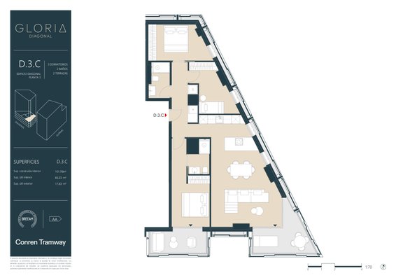 Mit der Energiezertifizierung von Breeam garantiert Gloria-Diagonal nicht nur Komfort, sondern auch Nachhaltigkeit und bietet ein umweltfreundliches Zuhause, das die höchsten Energieeffizienzstandards erfüllt.
