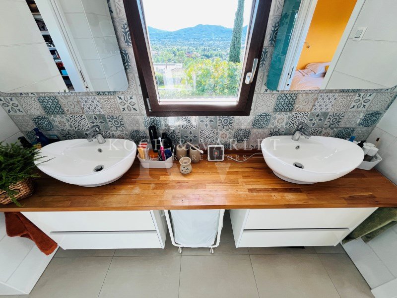 Le confort est garanti par des panneaux solaires, la climatisation et le chauffage au sol, tandis que le garage privé et l'espace de stationnement pour plusieurs véhicules offrent un maximum de commodité.