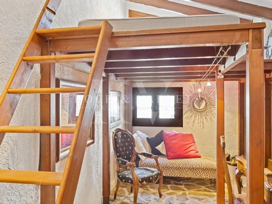 La chambre principale est située à l'étage supérieur et offre un accès direct à une grande terrasse fermée qui est également idéale comme bureau ou studio.