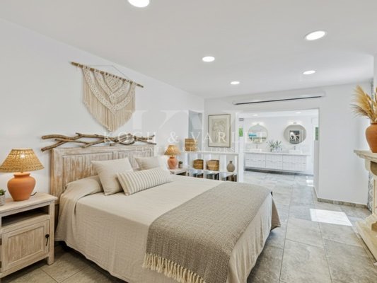 Sous la villa du rez-de-chaussée avec 4 chambres et 3 salles de bains est également un appartement avec 2 chambres, salon et salle de bain. De plus, il y a une casita spacieuse et climatisée séparée qui est actuellement utilisée comme buanderie avec deux machines à laver, 2 sèche-linge et un évier d'eau froide. Celui-ci peut être converti en une autre chambre ou un bureau.