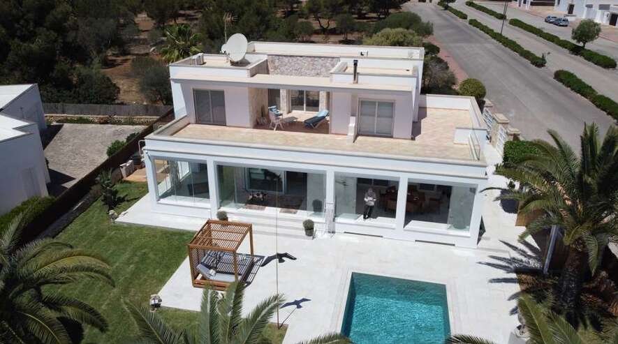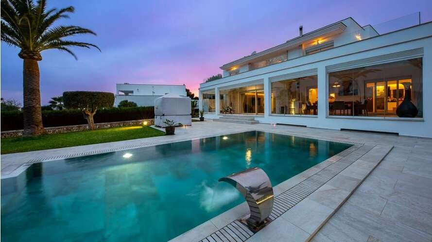 Diese modernisierte, mediterrane Luxusvilla mit gültiger Ferienvermietungslizenz begeistert durch ihre spektakuläre Lage in einer ruhigen, gehobenen Wohngegend nahe Portopetro – einem der exklusivsten Küstenorte der Insel, bekannt für idyllische Badebuchten, familienfreundliche Strände und mehrere Yachthäfen.