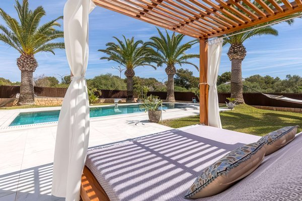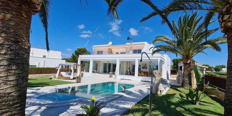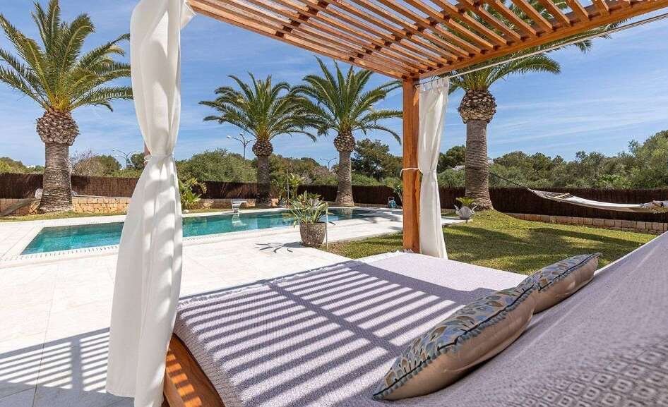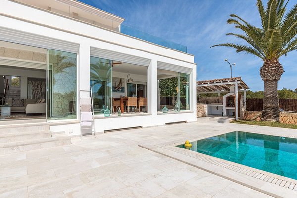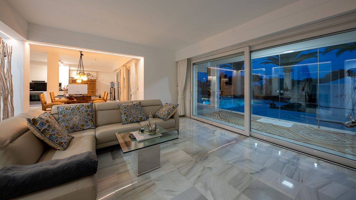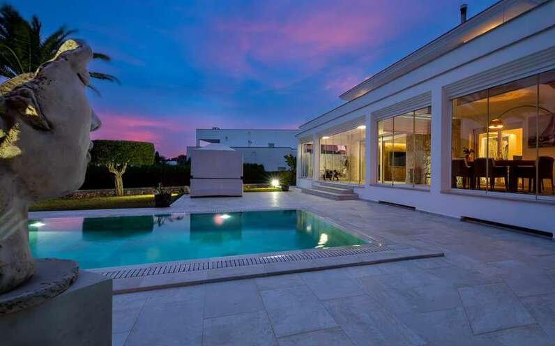 Diese modernisierte, mediterrane Luxusvilla mit gültiger Ferienvermietungslizenz begeistert durch ihre spektakuläre Lage in einer ruhigen, gehobenen Wohngegend nahe Portopetro – einem der exklusivsten Küstenorte der Insel, bekannt für idyllische