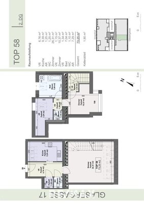Die hier angebotene DG-Maisonette Wohnung hat 2 Zimmer. Die Hauptebene umfasst Küche, ein WC, Abstellraum und Wohnbereich. Alles separat begehbar. Im oberen Teil ist das Schlafzimmer, ein weiteres WC und ein Abstellraum verfügbar sowie das Badezimmer.