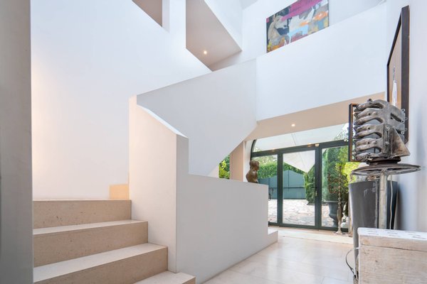 Errichtet auf einem Grundstück von mehr als 1.700 m², das schön mit Bäumen bepflanzt und abgegrenzt ist, erstreckt es sich über vier Ebenen und hat eine nutzbare Fläche von etwa 500 m².