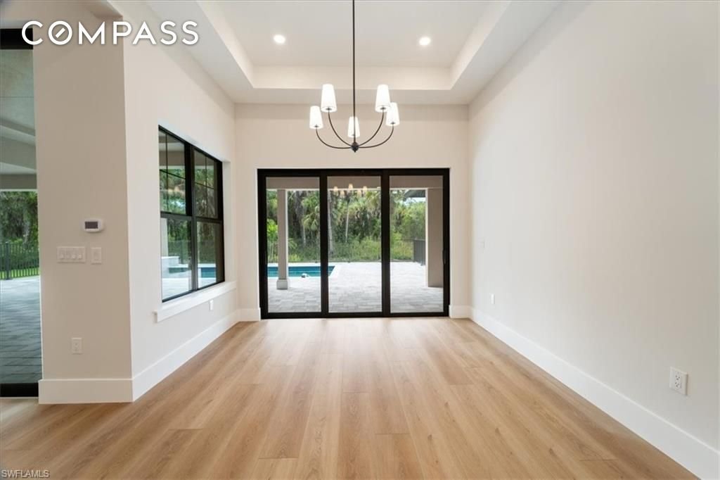 Erleben Sie das Beste von Neapel in diesem atemberaubenden neuen Anwesen auf 2,5 Hektar 100 % Hochland. Mit 6 Schlafzimmern, 4 voll ausgestatteten Bädern, einem geräumigen flexiblen Zimmer und einem Bonuszimmer im Obergeschoss verbindet dieses 4.640 Quadratfuß große Wohnhaus zeitlose Handwerkskunst mit modernem Design. Das gewölbte Wohnzimmer mit dekorativen Balken, maßgefertigter Beleuchtung und 3 Meter hohen Schiebern füllt das Haus mit natürlichem Licht. Das Wohnzimmer öffnet sich zu einer weitläufigen Lanai mit einem funkelnden Pool und Spa mit Pentair-System und einer übergroßen Terrasse – perfekt für Gäste, Essen im Freien und das schöne Wetter Floridas. Die Küche Ihres Kochs verfügt über maßgefertigte Schränke, ein Thermador-Gerätepaket mit Dual-Fuel-Herd, einen Kühlschrank mit Panel, eine übergroße begehbare Speisekammer und Quarzarbeitsflächen. Der durchdachte Grundriss umfasst separate Schlafzimmerflügel, eine riesige Hauptsuite mit angrenzendem Büro und ein Bonuszimmer im Obergeschoss, das für ein zukünftiges Gästebad angelegt ist. Weitere Highlights sind: Vollhausgenerator, Aufwälzfenster (PGT), Metalldach, vergrabener Gastank, 3-Auto-Garage mit Platz für einen Autolift, Bewässerungssystem, RO-System und Gasleitung bereit für einen Außenkamin oder eine Küche. Am Ende einer ruhigen Straße gelegen, umgeben von neuen Häusern. Mit 2,5 Acres gibt es reichlich Platz für ein zukünftiges Gästehaus, eine Werkstatt oder sogar einen Pickleball-Platz. Einfacher Zugang zur Vanderbilt Beach Rd Extension, zum Einkaufen und zu den besten Schulen in Naples!