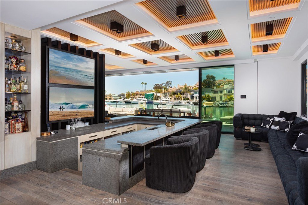 Willkommen auf einem der außergewöhnlichsten Wasseranwesen von Newport Beach – ein Schaufenster modernen Küstendesigns und erstklassiger Handwerkskunst. Perfekt gelegen an der prestigeträchtigen Harbor Island Drive verbindet dieses von Architekten geprägte Wohnhaus elegantes, zeitgenössisches Wohnen mit Resort-ähnlichen Annehmlichkeiten und atemberaubenden Panoramablicken auf die Bucht. Die Wände aus La Cantina-Glas verschwinden für ein echtes Innen- und Außenerlebnis und öffnen sich zu einer weitläufigen Entertainer-Terrasse mit Wolf BBQ, Green Egg Smoker, Bierzahn, Feuerstelle und privatem 45-Fuß-Steg. Jeder Zentimeter dieses Hauses wurde darauf ausgelegt, zu beeindrucken – von der maßgefertigten Beleuchtung und den kassettierten Decken mit Holzeinlagen bis hin zu den 7" europäischen Eichenböden und Designer-Oberflächen im gesamten Gebäude. Die Küche des Kochs ist ein ganz neues Level: La Cornue Flamberge Rotisserie, Wolf 60" Dual-Fuel-Herd, Sub-Zero-Kühlung, Miele Geschirrspüler, Gessi-Armaturen und Marmor-Vorbereitungsinsel. Unterhalten Sie stilvoll an der Step-Down-Bar mit individuellen Lederdetails und Sub-Zero-Eismaschine oder veranstalten Sie ein Abendessen unter auffälliger Beleuchtung neben einer temperaturkontrollierten Weinwand. Im Obergeschoss kann die Hauptsuite mit jedem Fünf-Sterne-Resort konkurrieren, mit einer gewölbten Decke, Kamin, privatem Balkon, Umkleideraum, Dampfdusche, Badewanne und automatisierten Neorest-Toiletten. Alle zusätzlichen Schlafzimmer sind mit eigenem Bad ausgestattet und bieten ultimativen Komfort und Privatsphäre. Smart-Home-Automatisierung mit Crestron steuert jedes Element – Beleuchtung, Klima, Musik und Sicherheit. Mit Panoramablick auf die Promontory Bay und nur wenige Minuten von Newports besten Restaurants und Einkaufsmöglichkeiten entfernt ist dies mehr als nur ein Zuhause – es ist ein Lifestyle-Statement.