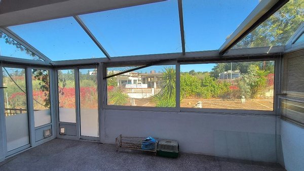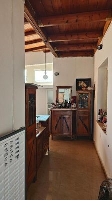 Im älteren Teil des Hauses befinden sich eine Eingangshalle mit einer kompakten Küche, ein Ess- und Wohnbereich, ein separates Wohnzimmer mit Kamin, ein Badezimmer und zwei Schlafzimmer. Von hier aus gelangt man auf eine geräumige, geschlossene Veranda. Das Haus ist mit einer Solaranlage, Klimaanlagen, Überwachungskameras und einer Ölheizung ausgestattet.
