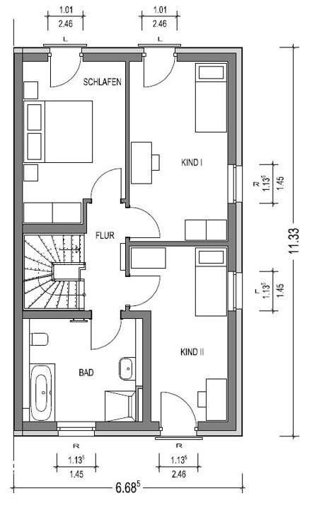 Im ersten Stock erwarten Sie drei Zimmer und ein großes Badezimmer mit Wanne und Dusche. Eines der Zimmer begeistert mit Zugang zur sonnigen Süd-Terrasse.