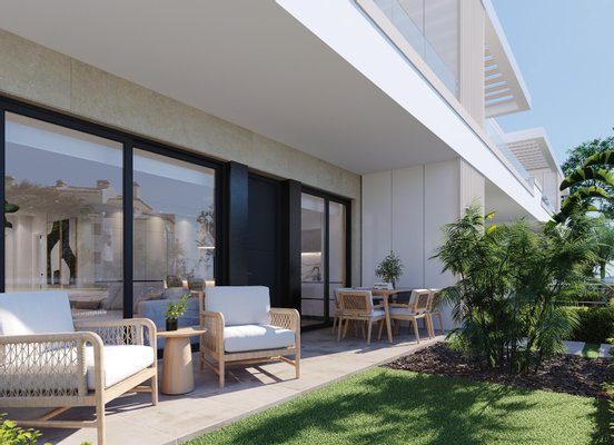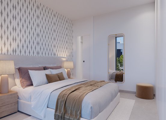 Der Komplex besteht aus fünf Apartmentblöcken mit acht Apartments pro Block, Apartments im Erdgeschoss (3 Schlafzimmer, 2 Badezimmer) mit privatem Garten, Apartments im ersten und zweiten Stock (2 Schlafzimmer, 2 Badezimmer) mit einer geräumigen Terrasse und Penthäusern (3 Schlafzimmer, 2 Badezimmer) mit einer großen Dachterrasse von 56 m². Es gibt sechs Blöcke mit Apartments im Bungalowstil, alle mit 2 Schlafzimmern und 2 Badezimmern, jeweils mit einem privaten Garten (Erdgeschoss) oder einer Dachterrasse (oberste Etage). Alle zeichnen sich durch eine raffinierte Architektur, hochwertige Oberflächen und höchste Baustandards aus, die den Eigentümern maximalen Komfort garantieren.