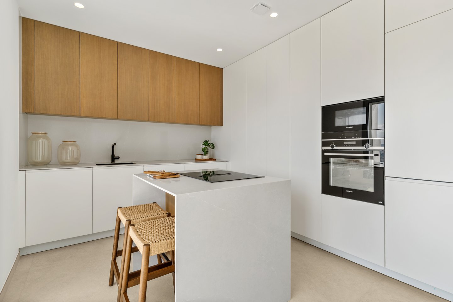 In der Wohnanlage Jazmines in Cumbre del Sol öffnet sich die Villa Indigo dem Meer wie eine bewohnbare Skulptur. Ihr schlichtes, geometrisches Design passt sich harmonisch an die Hanglage an und fügt sich dezent in die mediterrane Landschaft ein. Licht, Meeresbrise und Horizont werden hier zu ständigen Begleitern des Alltags.