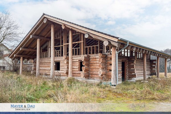Dieses besondere und liebevoll aus Holz geschaffene Blockhaus im Rohbau ist eingebettet in eine zauberhafte Naturkulisse und wartet auf den passenden Naturliebhaber.