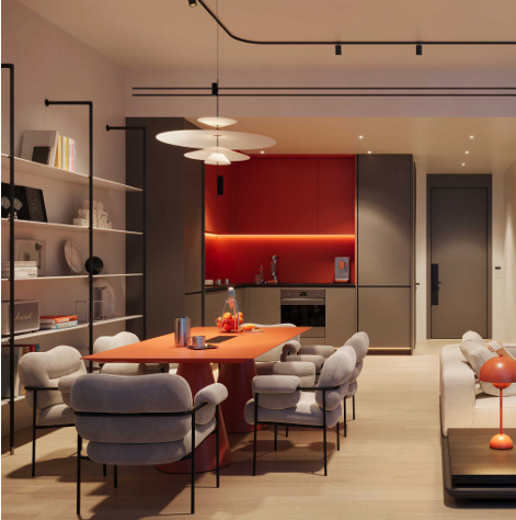 Im Inneren der Wohnung finden Sie Siemens-Küchen, Einbauschränke und Luxusausstattungen von renommierten Designern wie Cassina, Minotti, Tom Dixon, Flos und Lalique. Die großen, bodentiefen Fenster durchfluten den Raum mit natürlichem Licht und schaffen eine offene und einladende Atmosphäre.