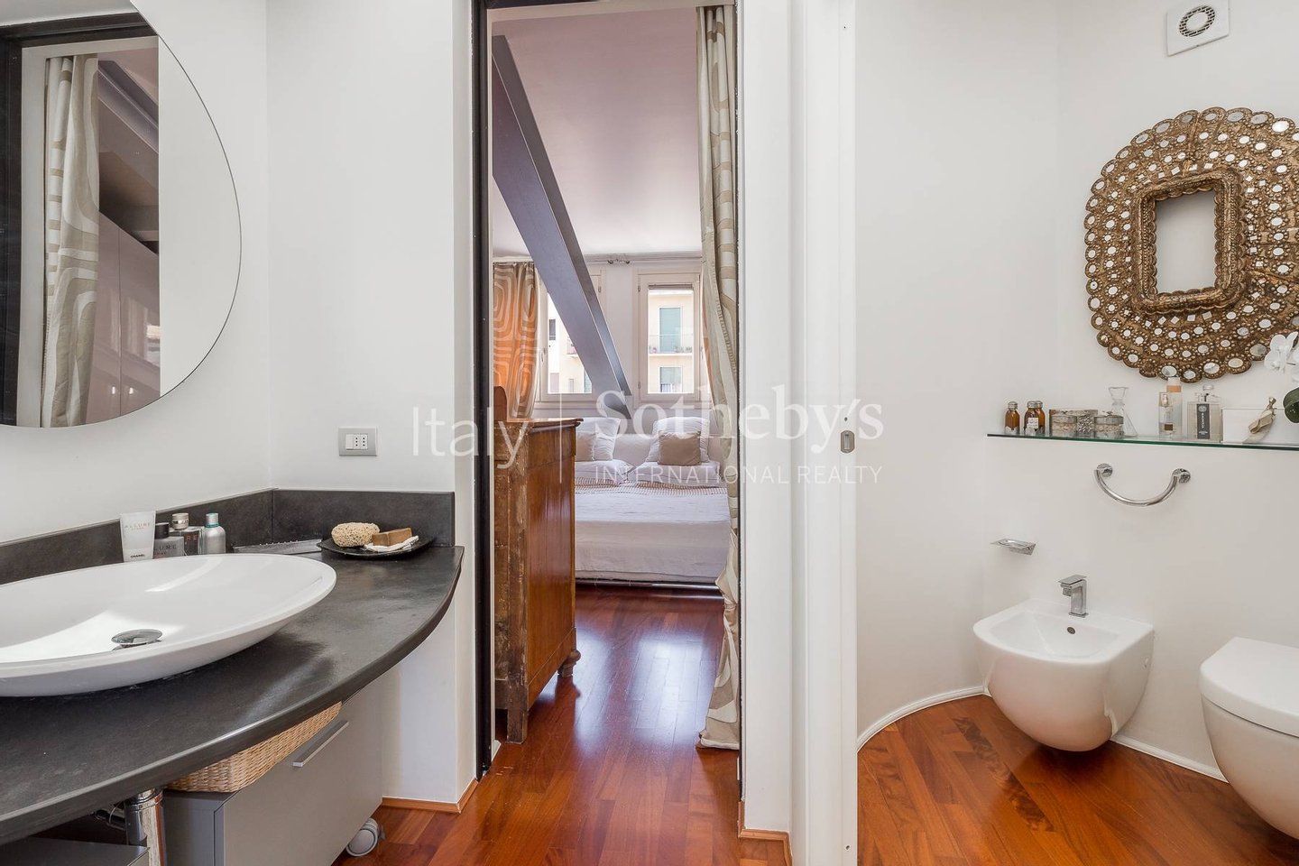 In einem repräsentativen, kürzlich renovierten Gebäude aus dem 17. Jahrhundert befindet sich ein prächtiges, geräumiges Penthouse im obersten Stockwerk auf zwei Ebenen.