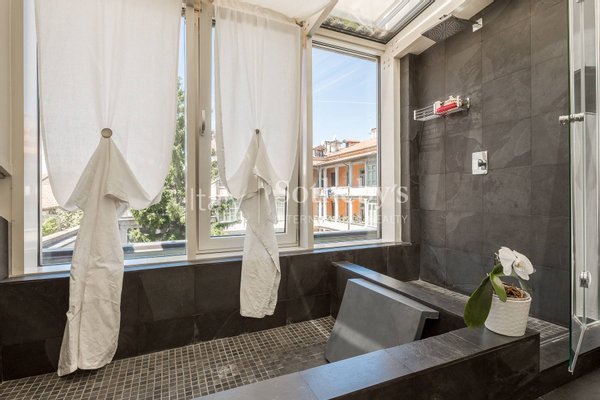 In einem repräsentativen, kürzlich renovierten Gebäude aus dem 17. Jahrhundert befindet sich ein prächtiges, geräumiges Penthouse im obersten Stockwerk auf zwei Ebenen.