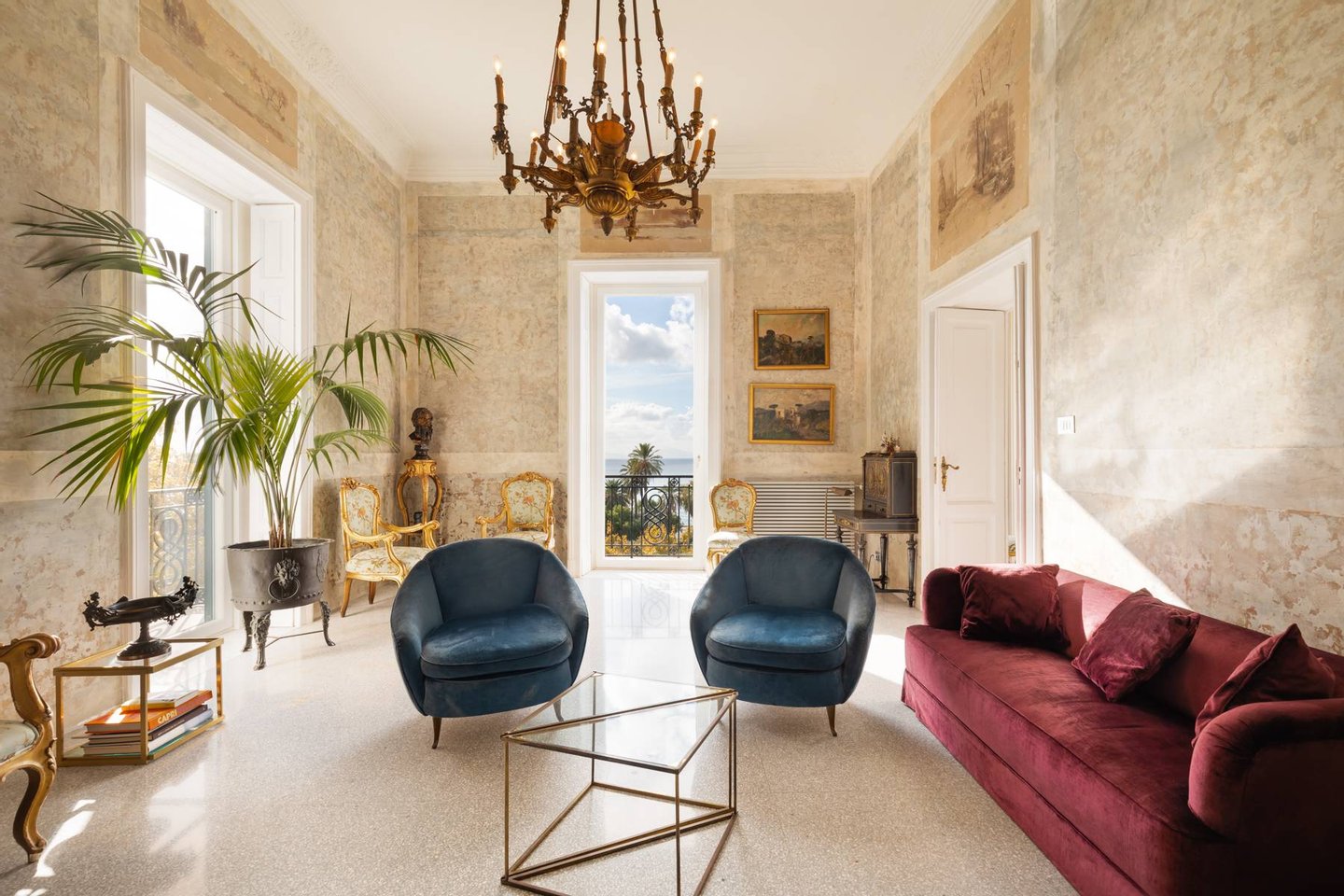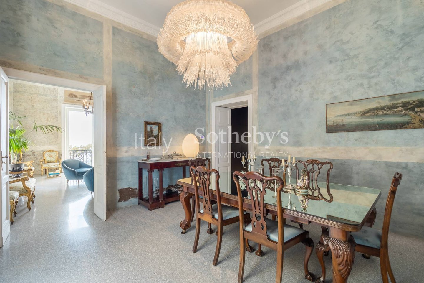In Chiaia, einem der prestigeträchtigsten und begehrtesten Stadtviertel Neapels, befindet sich diese prächtige Wohnung im Dachgeschoss eines eleganten Altbaus, nur wenige Schritte von den wichtigsten Sehenswürdigkeiten der Stadt und der Uferpromenade entfernt.