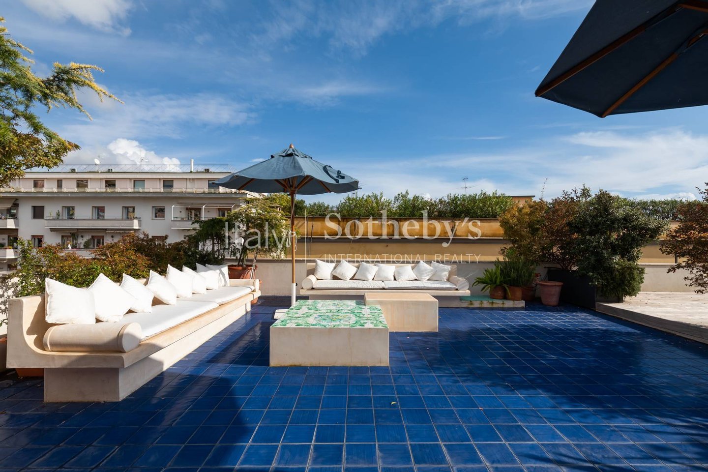 Die Immobilie ist geschmackvoll eingerichtet und bezugsfertig: großzügige Repräsentationssalons, zwei Küchen, ein Hauswirtschaftsraum und vier Doppelzimmer, jeweils mit eigenem Bad en-suite. Die Wohnung erstreckt sich über eine Fläche von 300 m² und wird durch eine herrliche Dachterrasse mit Panoramablick auf die Schönheiten der Stadt ergänzt.