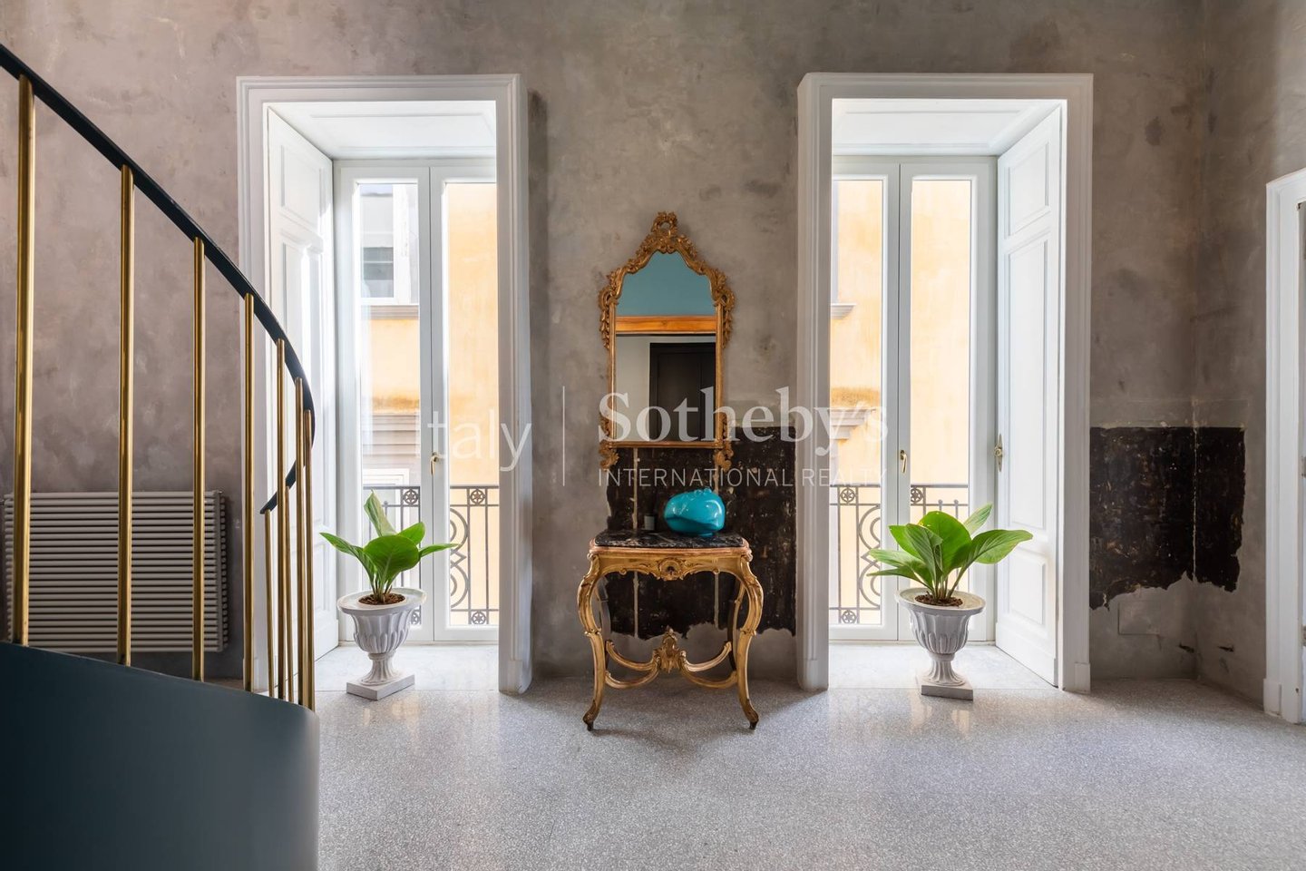 In Chiaia, einem der prestigeträchtigsten und begehrtesten Stadtviertel Neapels, befindet sich diese prächtige Wohnung im Dachgeschoss eines eleganten Altbaus, nur wenige Schritte von den wichtigsten Sehenswürdigkeiten der Stadt und der Uferpromenade