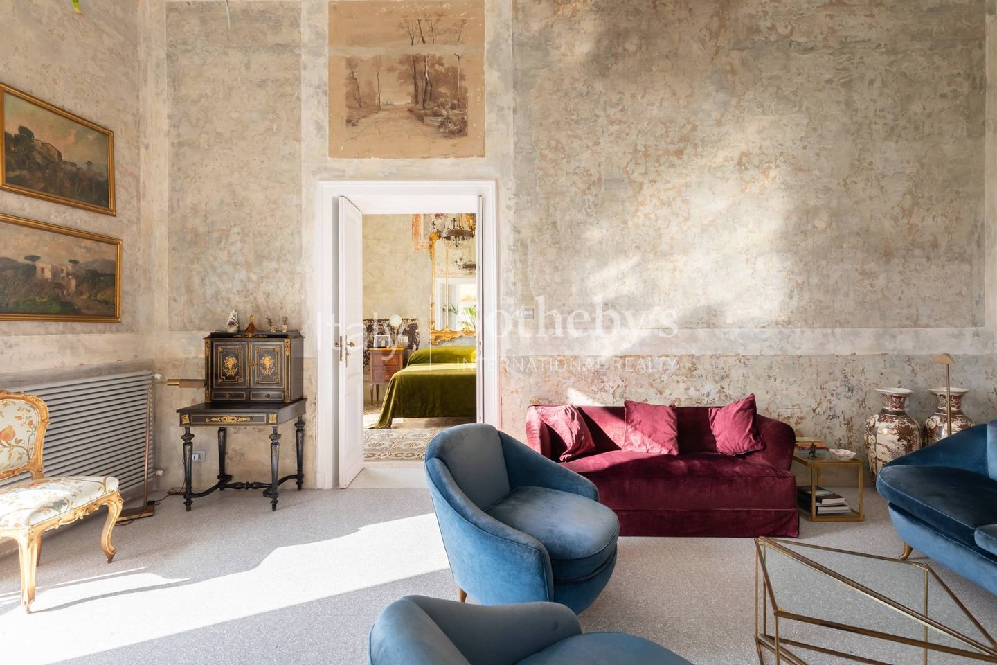 Die Immobilie ist geschmackvoll eingerichtet und bezugsfertig: großzügige Repräsentationssalons, zwei Küchen, ein Hauswirtschaftsraum und vier Doppelzimmer, jeweils mit eigenem Bad en-suite. Die Wohnung erstreckt sich über eine Fläche von 300 m² und wird durch eine herrliche Dachterrasse mit Panoramablick auf die Schönheiten der Stadt ergänzt.