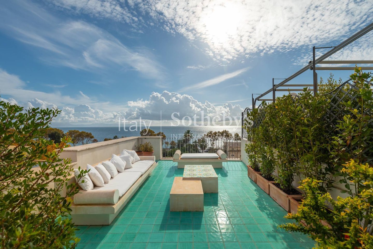 In Chiaia, einem der prestigeträchtigsten und begehrtesten Stadtviertel Neapels, befindet sich diese prächtige Wohnung im Dachgeschoss eines eleganten Altbaus, nur wenige Schritte von den wichtigsten Sehenswürdigkeiten der Stadt und der Uferpromenade