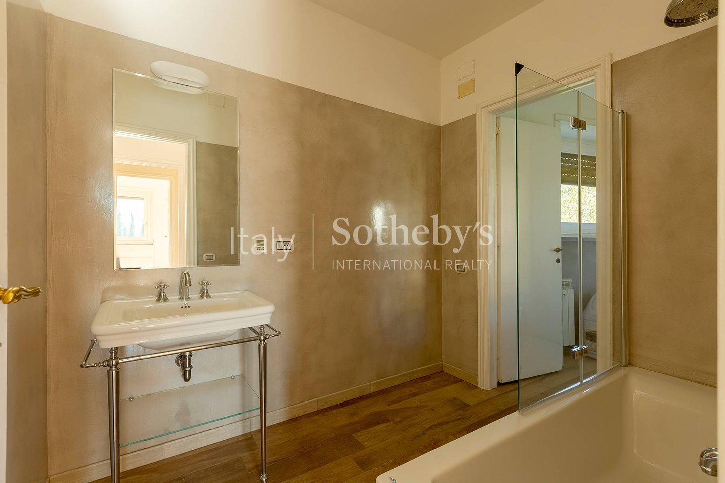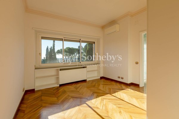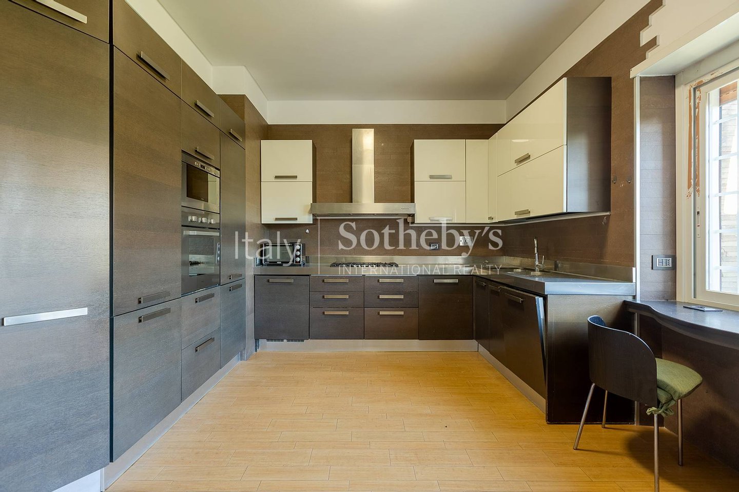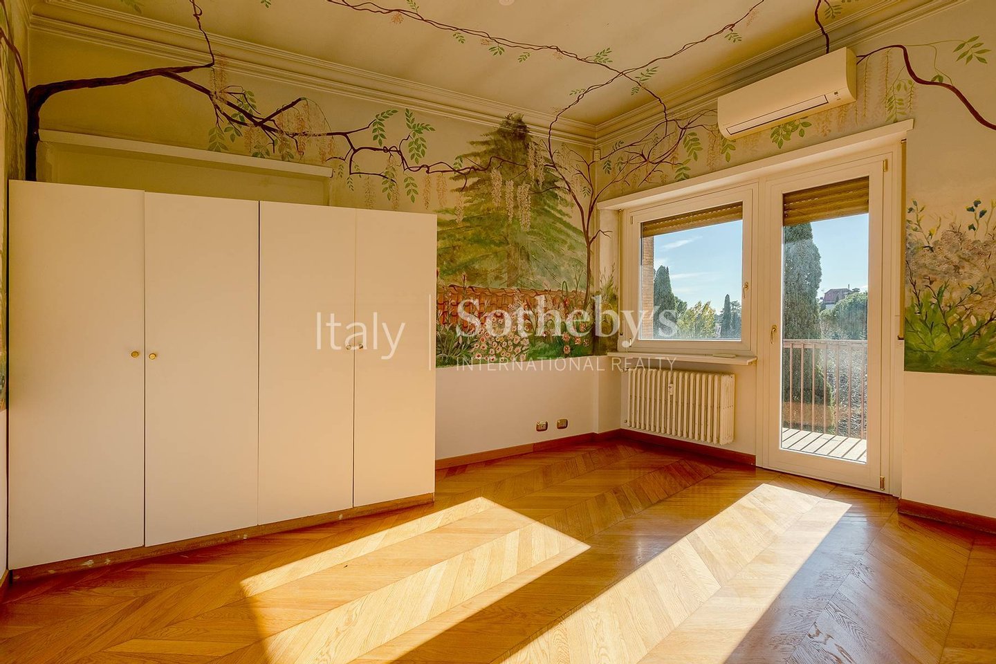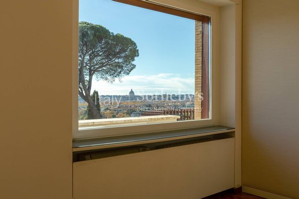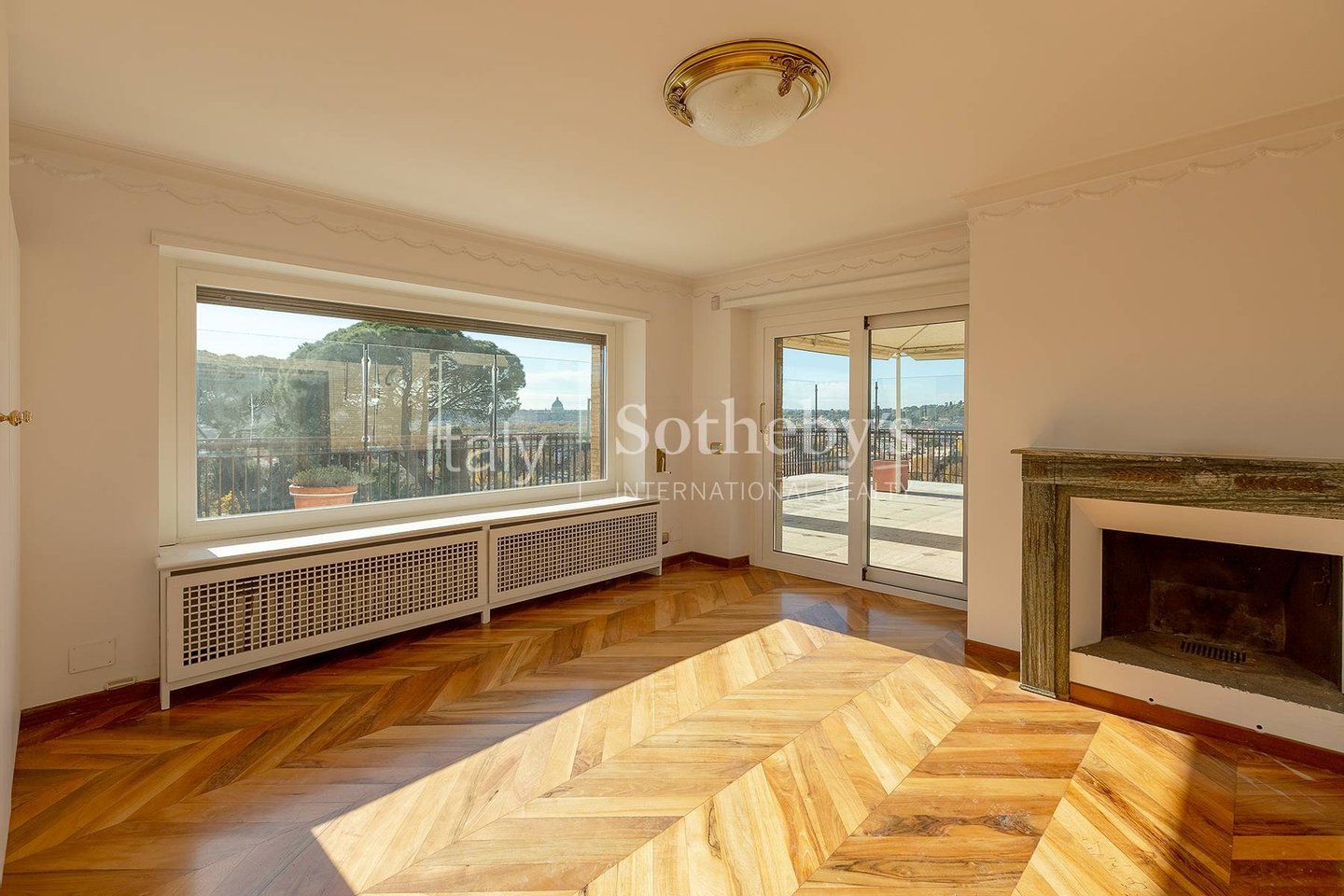 Die Immobilie wird durch herrliche Panoramaterrassen und einen umlaufenden Balkon bereichert, die großzügige Außenflächen mit einzigartigem Blick über Rom bieten. Ein Stellplatz in der gemeinschaftlichen Garage sorgt zusätzlich für Komfort.