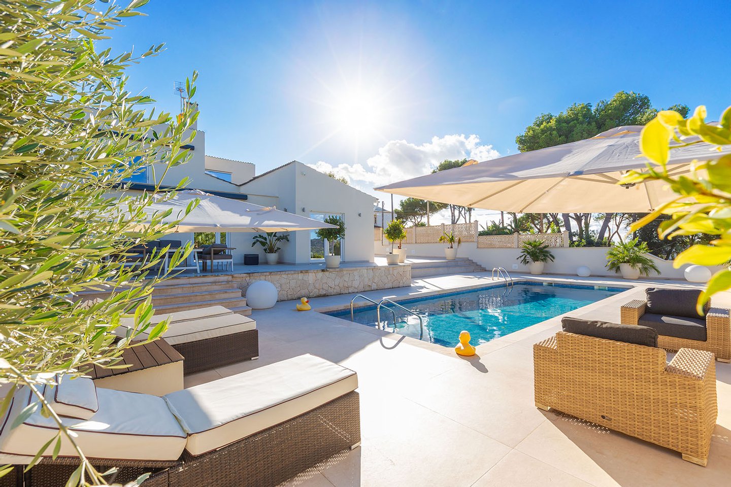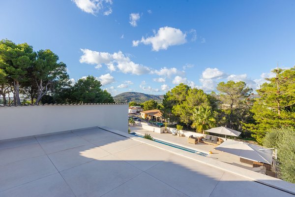 Dieses im Jahr 2023 vollständig sanierte Haus liegt in einer ruhigen Wohngegend, geprägt von Villen, Apartments und einer landschaftstypischen Pinienvegetation. Die Umgebung bietet mehrere kleine Badebuchten sowie einen Golfplatz, während weitere Strände, ein kleiner Yachthafen und zwei benachbarte Ferienorte mit guter Infrastruktur in kurzer Fahrzeit erreichbar sind. Weitere exklusive Häfen wie Port Adriano und Puerto Portals sowie mehrere Golfanlagen befinden sich nur wenige Fahrminuten entfernt. Der Flughafen ist in rund 25 Minuten mit dem Auto erreichbar.